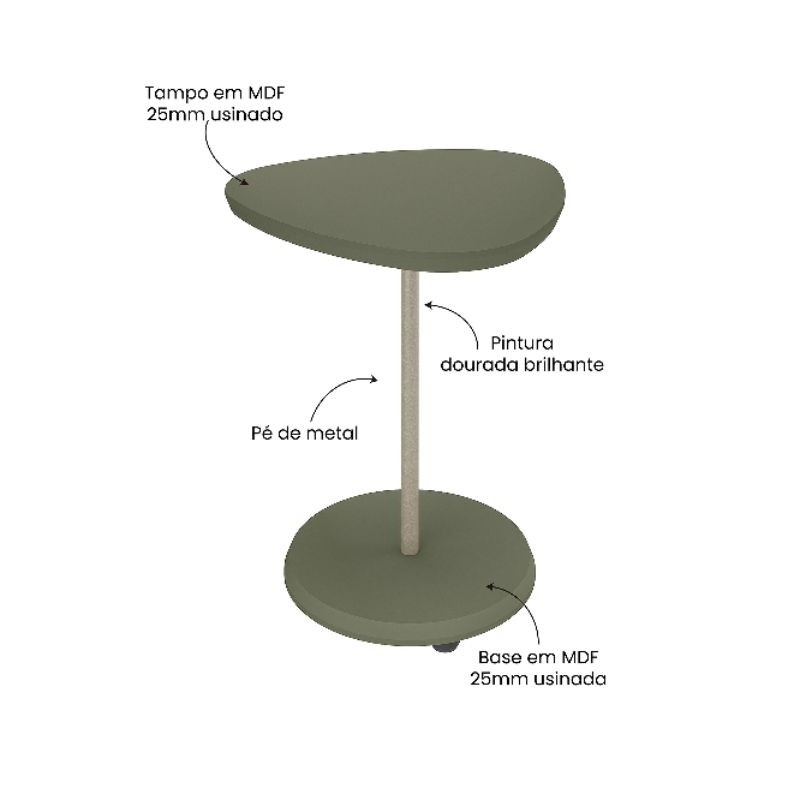 Mesa de Apoio Lateral Oval Orgânica para Sala e Quarto Funcional - Bel