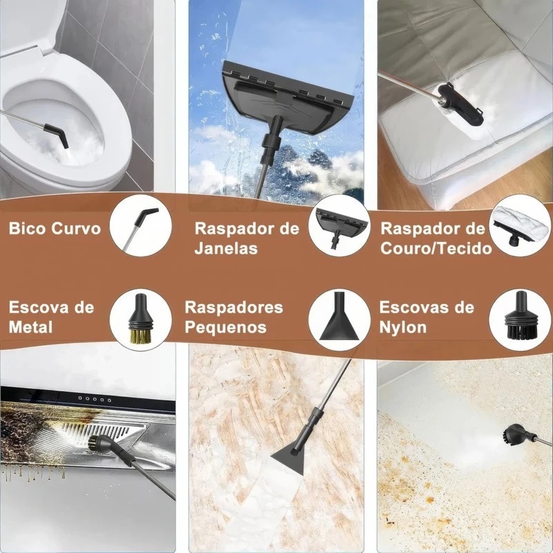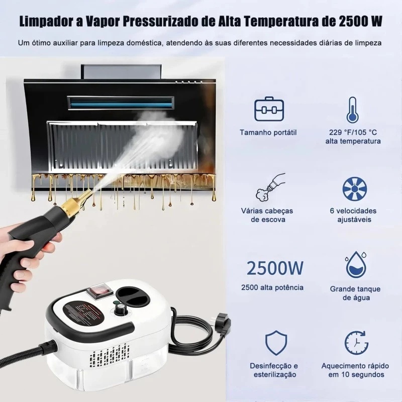 Limpador A Vapor Portátil De 2500 W Máquina De Limpeza Pressurizada De Alta Temperatura Com Cabeças De Escova E Luvas