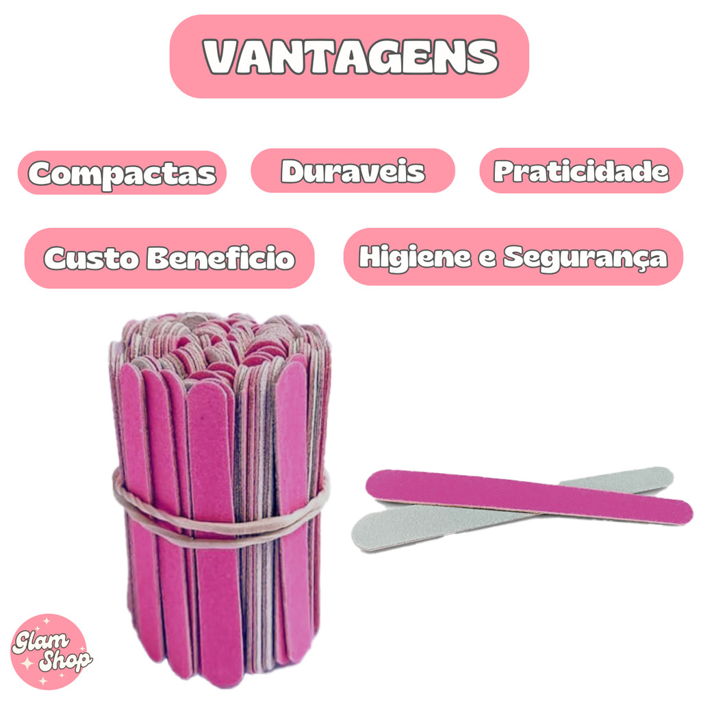200Un Lixa de Mini Lixa ROSA 8cm Descartavel para Manicure Pedicure Estética Salão de Beleza Spá