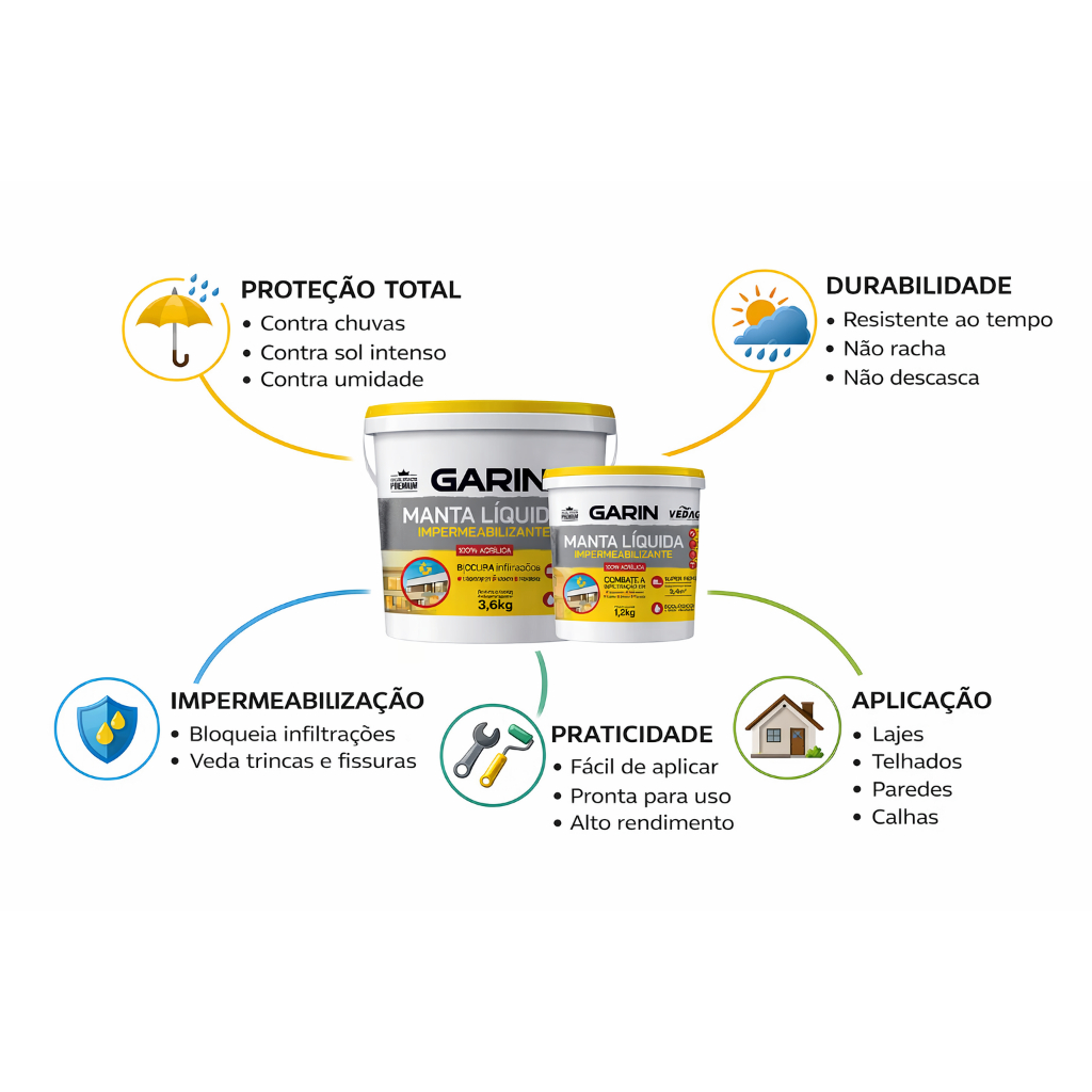Manta Líquida Emborrachada Impermeabilizante Garin 1,2kg ou 3,6kg
