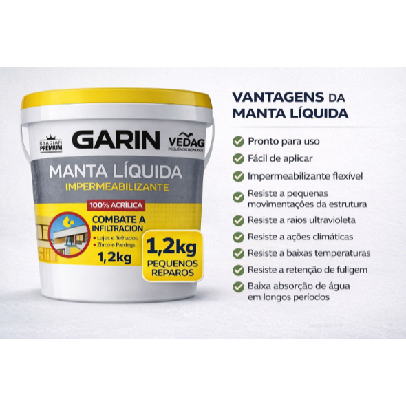 Garin Manta Líquida Impermeabilizante Branca Vedag 1,2kg – Proteção Contra Vazamentos