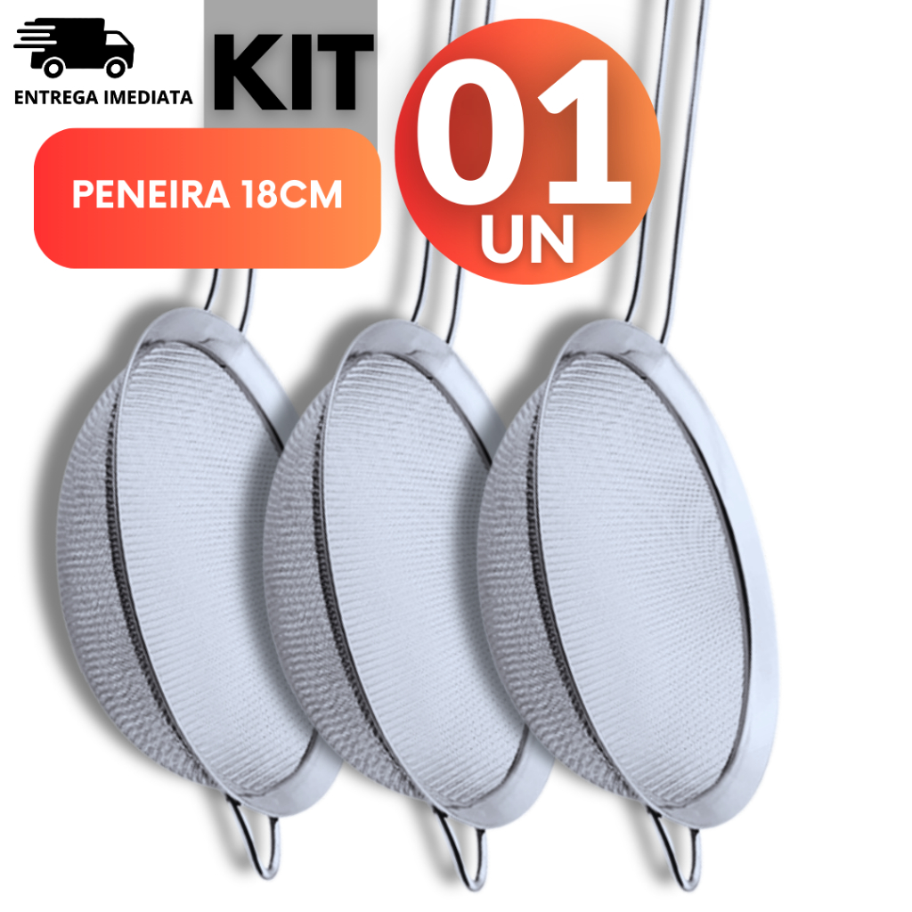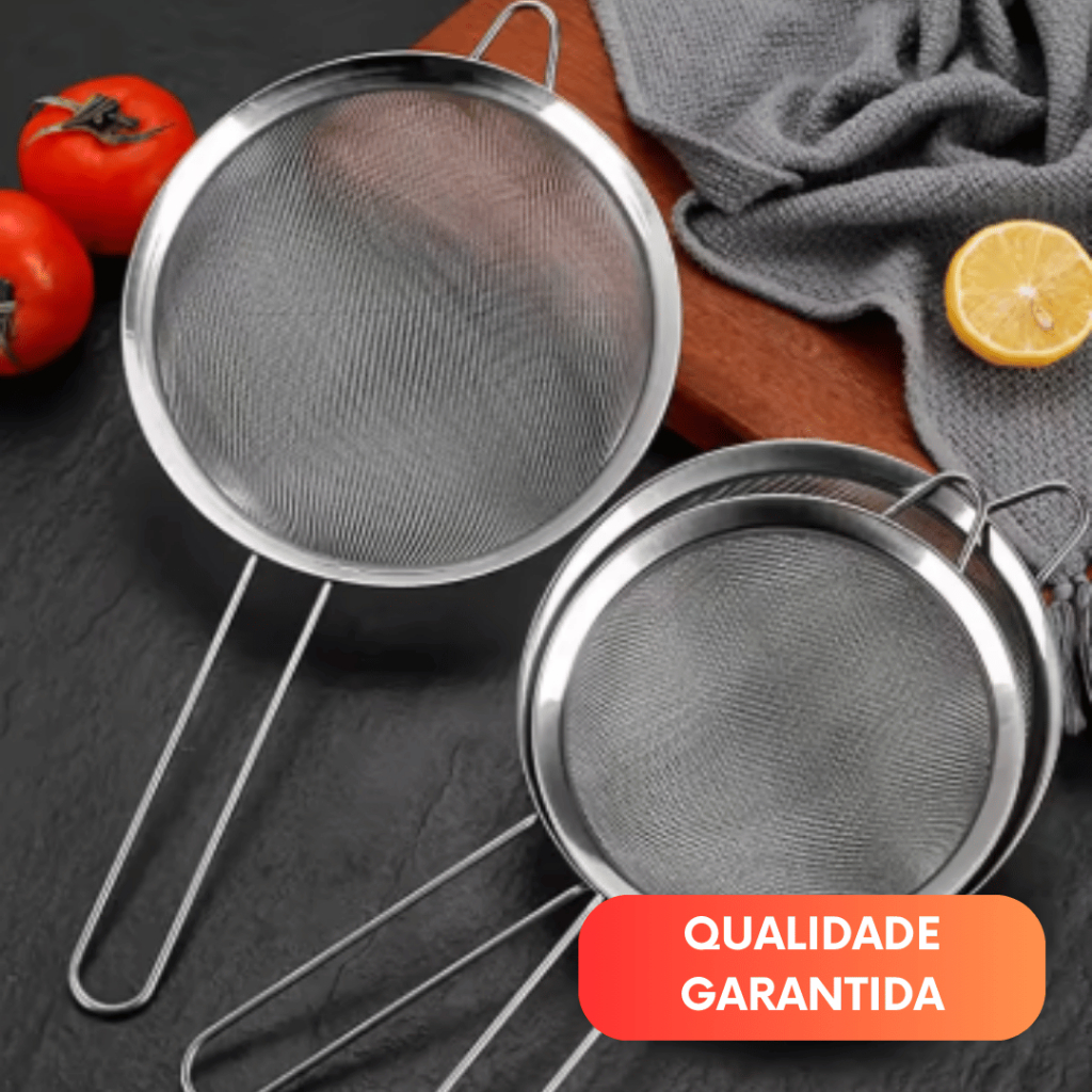 Jogo Kit 04 unidades Peneira Coador Manual Em Aço Inox Para Cozinha 18CM Premium Utilidades