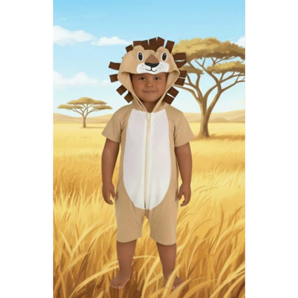 Fantasia Infantil Safari Roupa Leão Porco Coelho Tubarão Com Zíper e Rabo Envio Imediato !