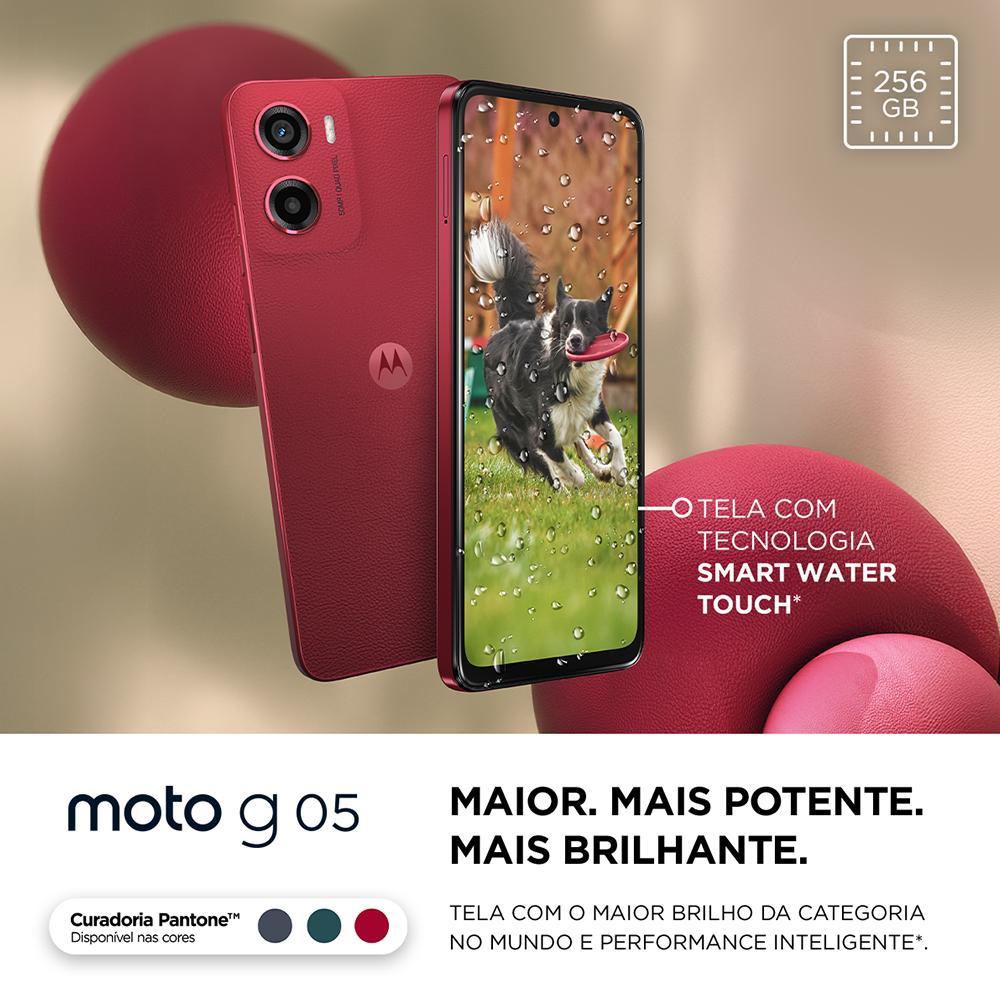 Smartphone Motorola Moto G05 4G 256GB 4GB RAM Câmera Traseira 50MP Frontal 8MP Tela 6.7" Bateria 5200 mAh - Vermelho