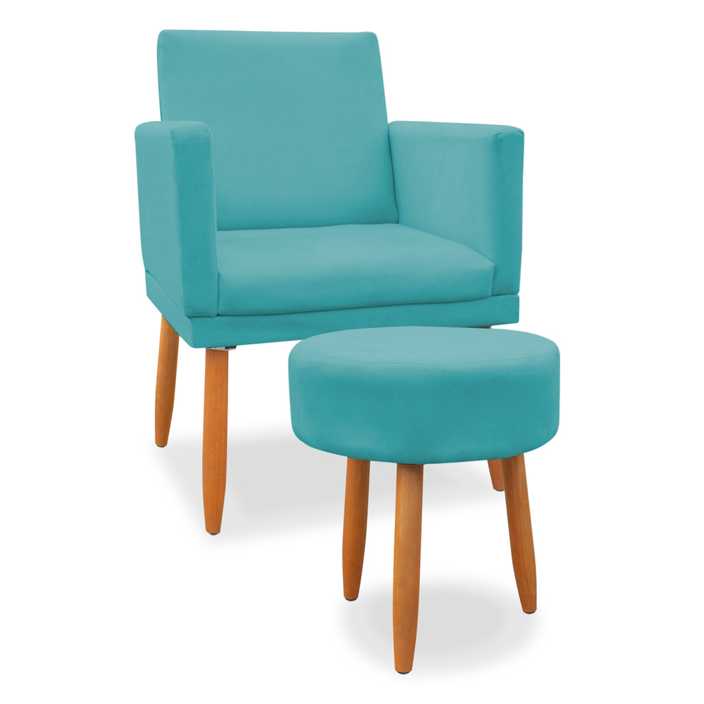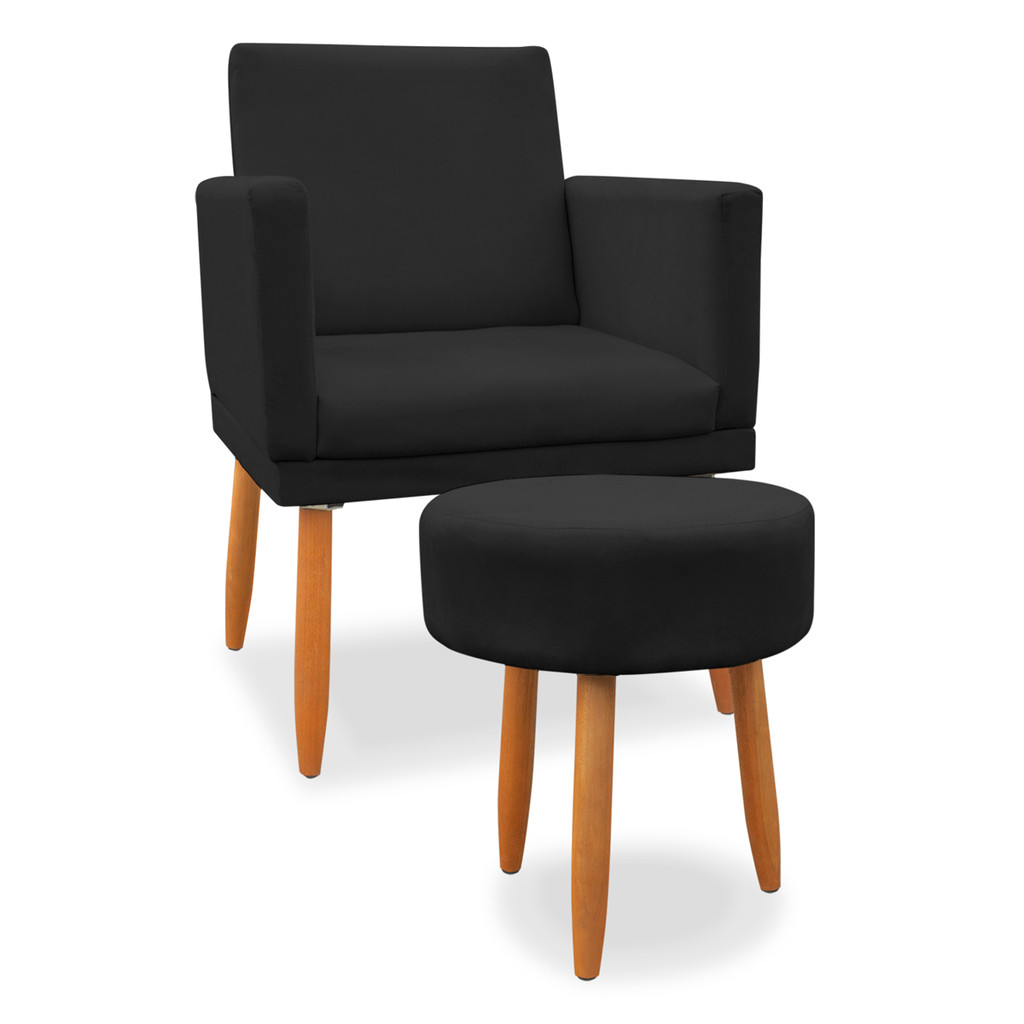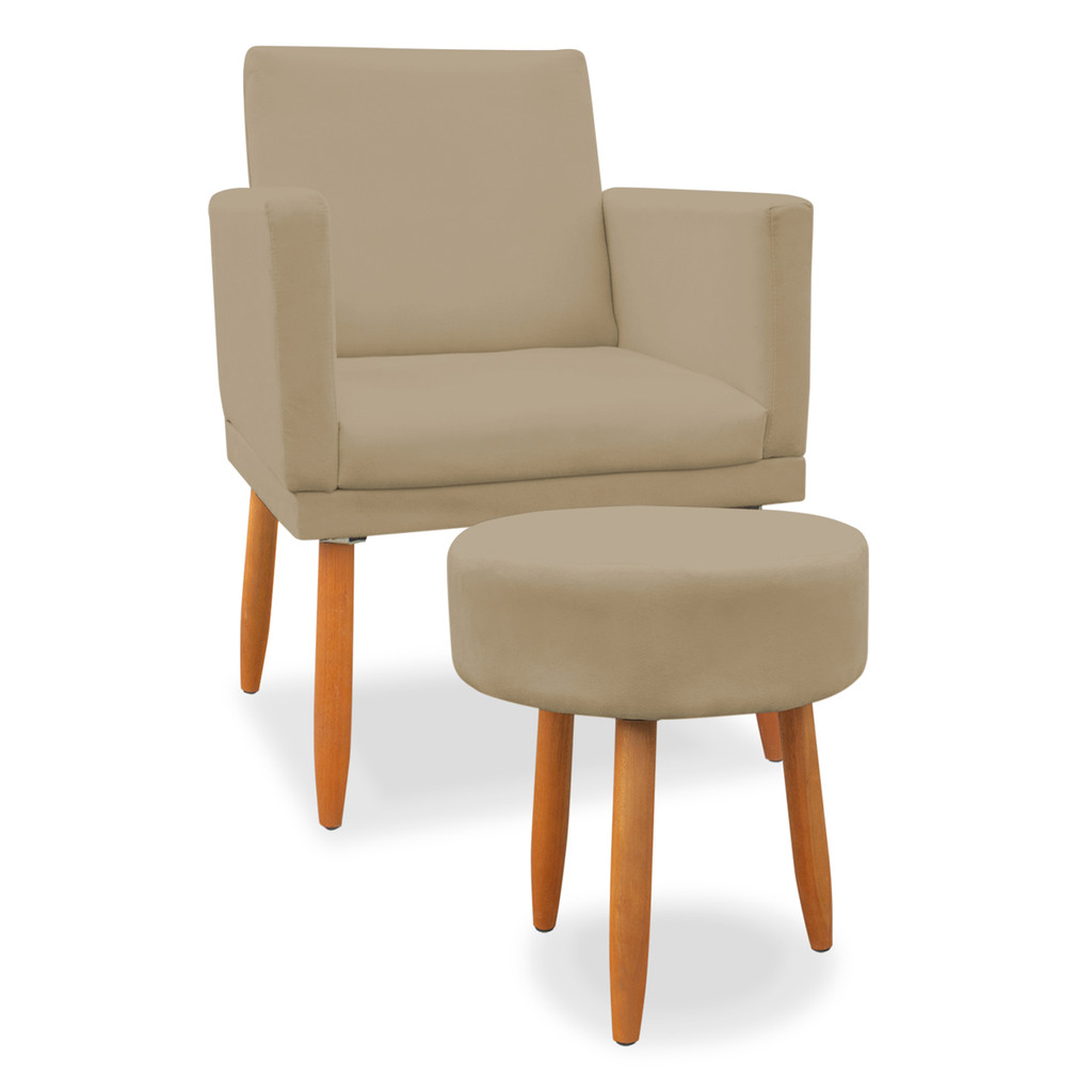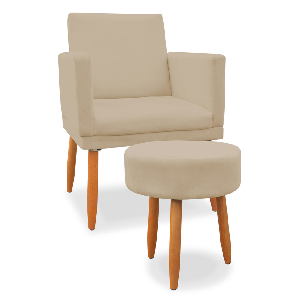 kit Poltrona Nina com Base de assento + Puff Redondo