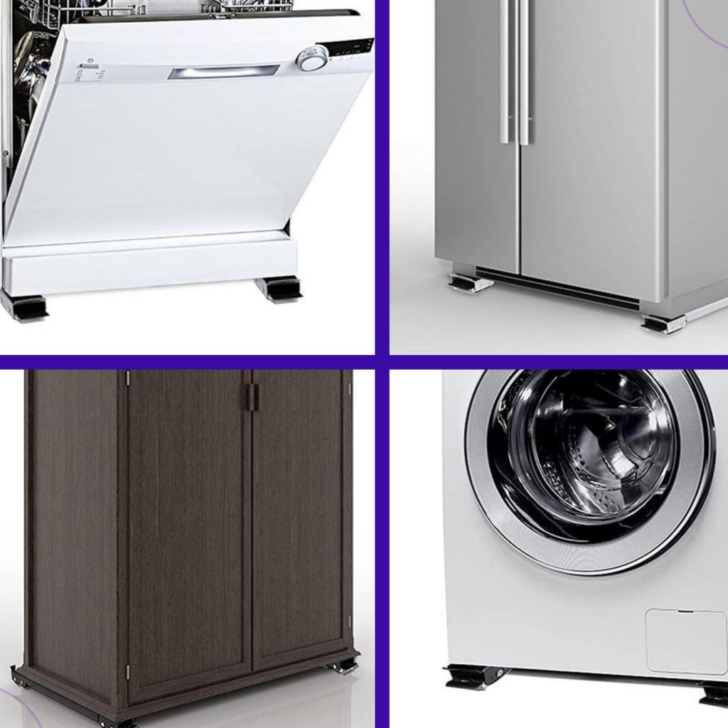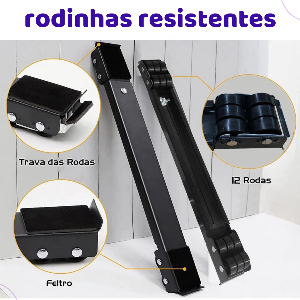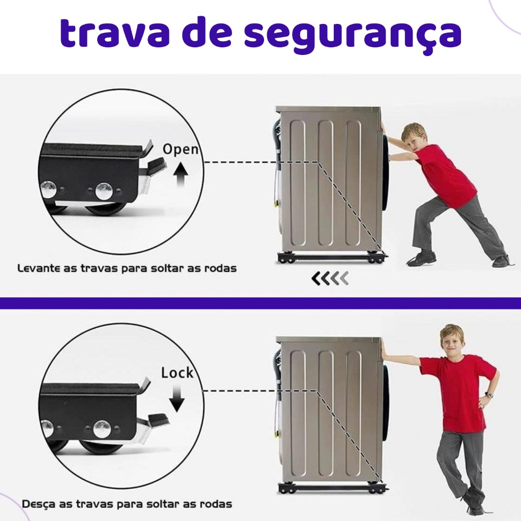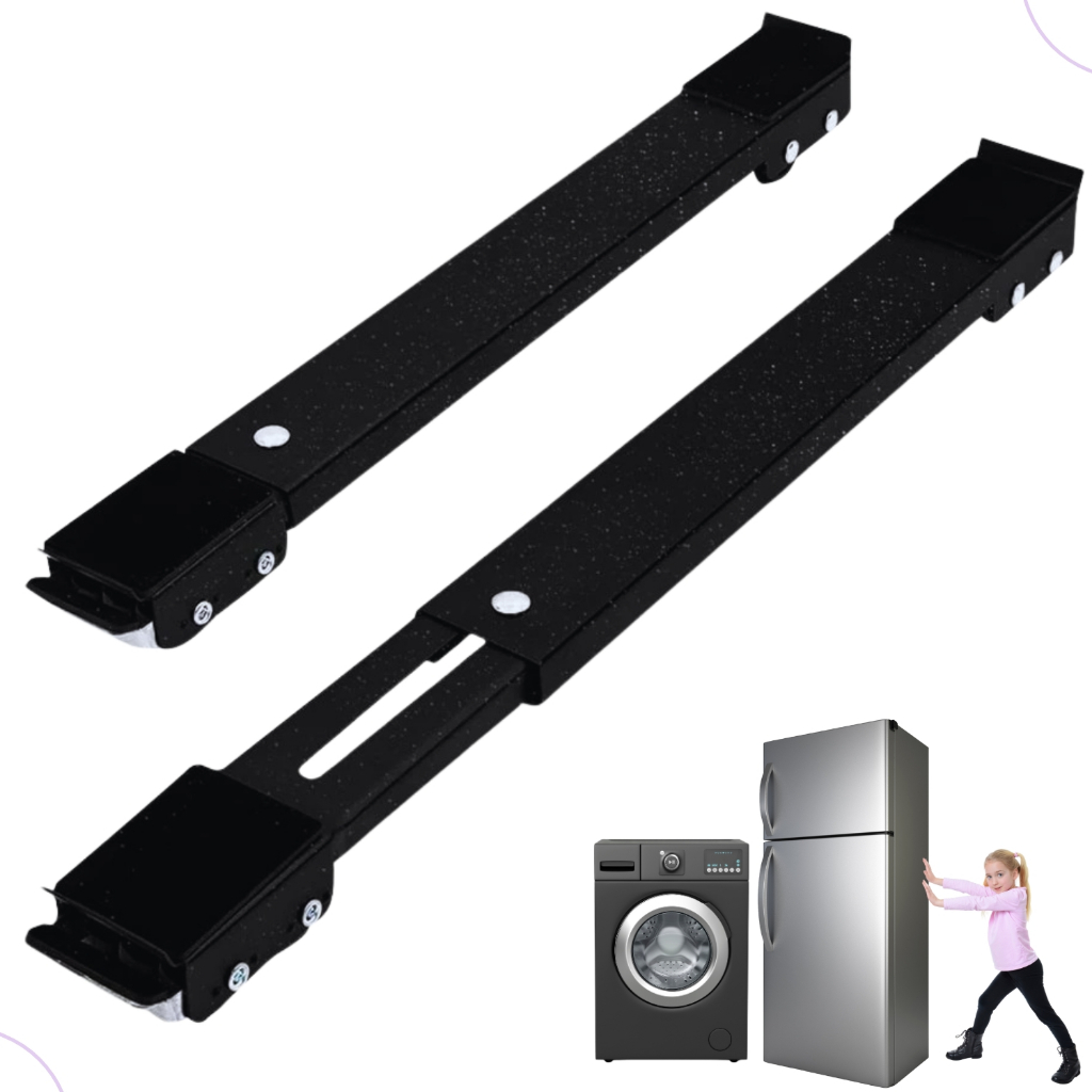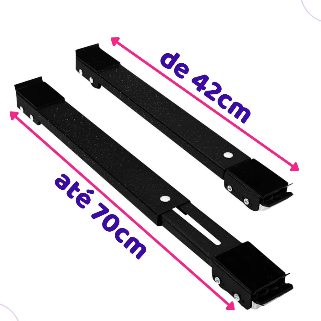 Suporte Base Móvel Com Rodinha Geladeira Fogão Maquina Lavar Secar em Metal Resistente na Cor Preta