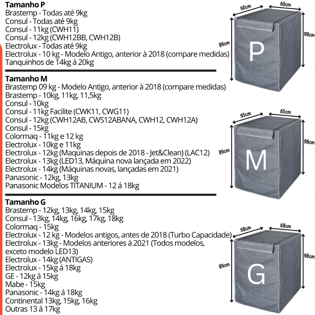 Capa Máquina de Lavar Impermeável Todos Tamanhos Marcas Brastemp Eletrolux Colormaq Consul