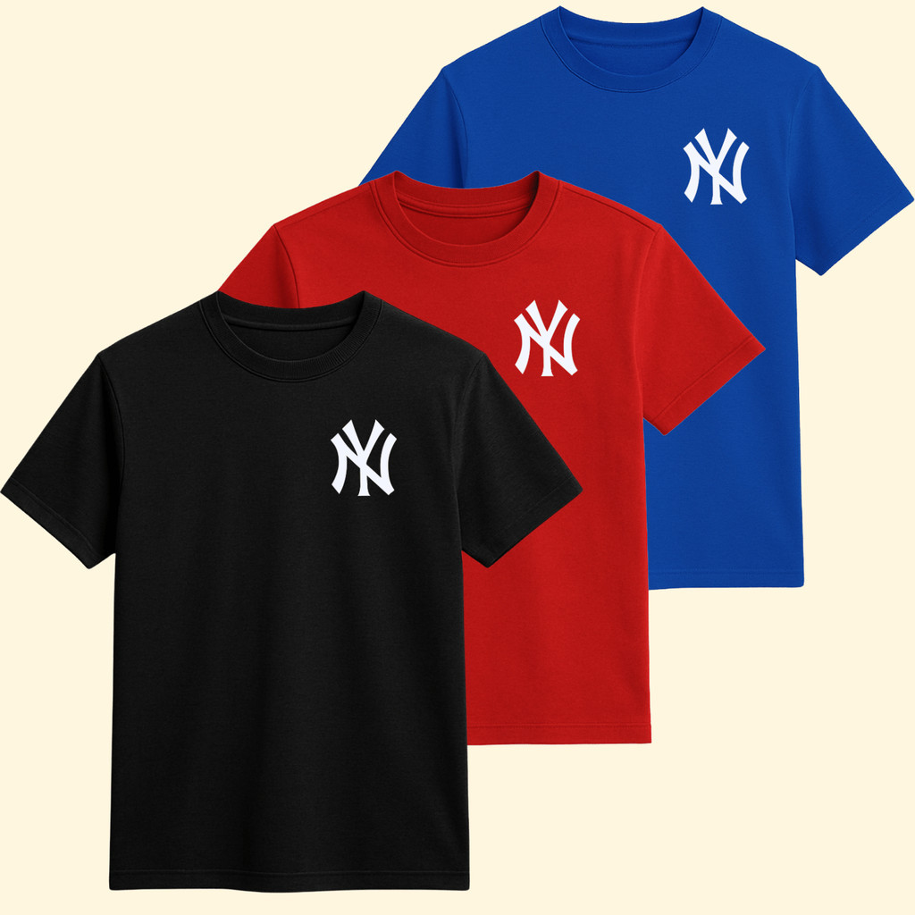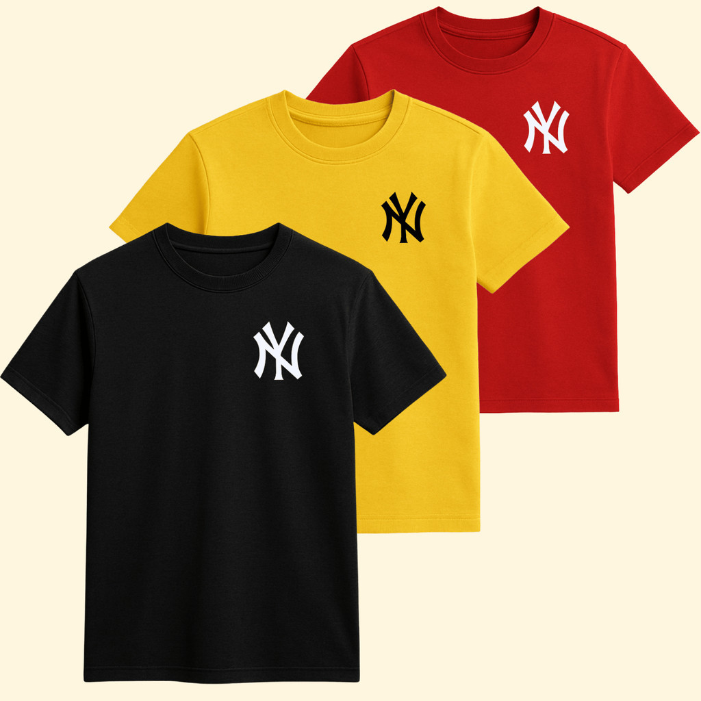 Kit 3 Camiseta Algodão Infantil New York Casual Várias Cores Leve Confortável Presente
