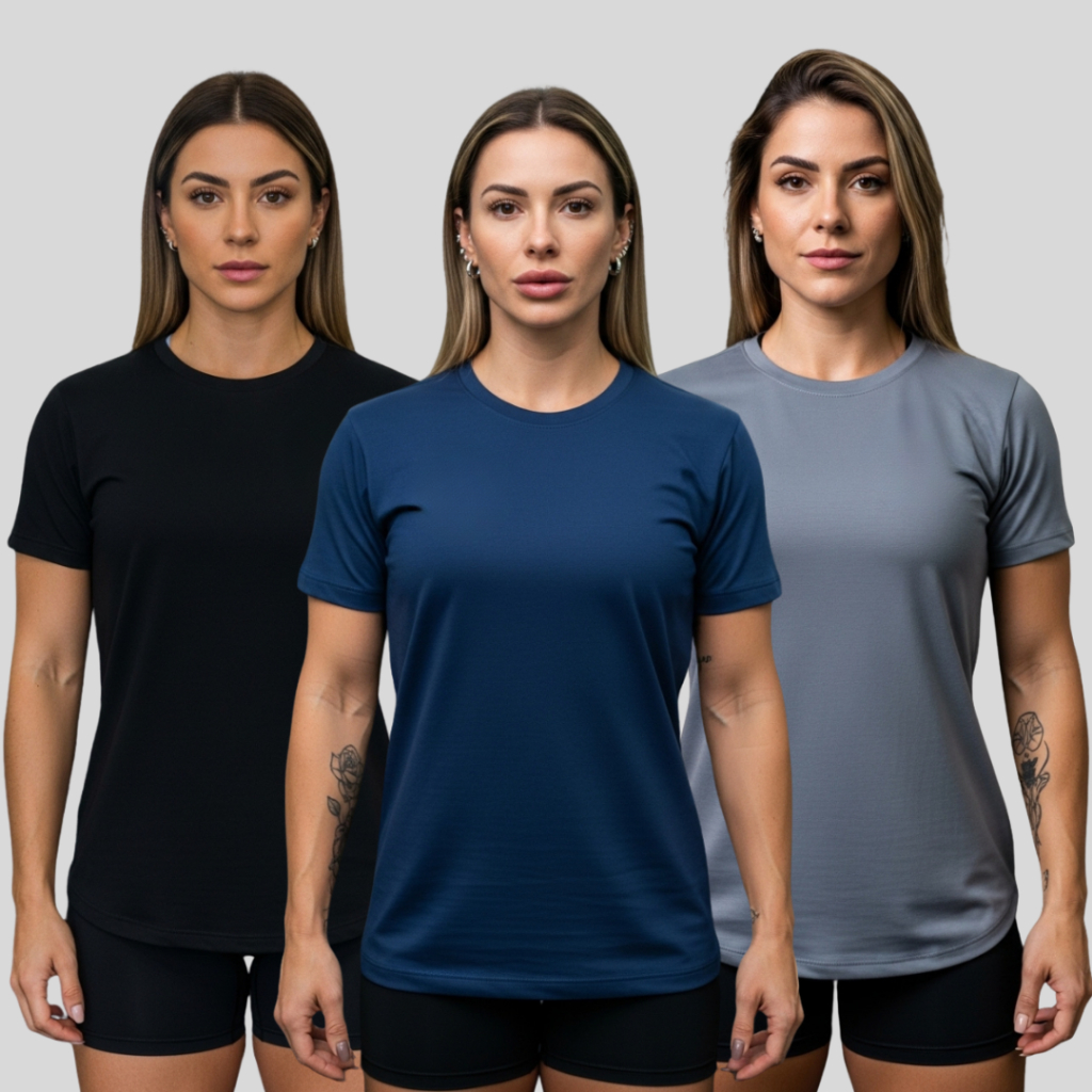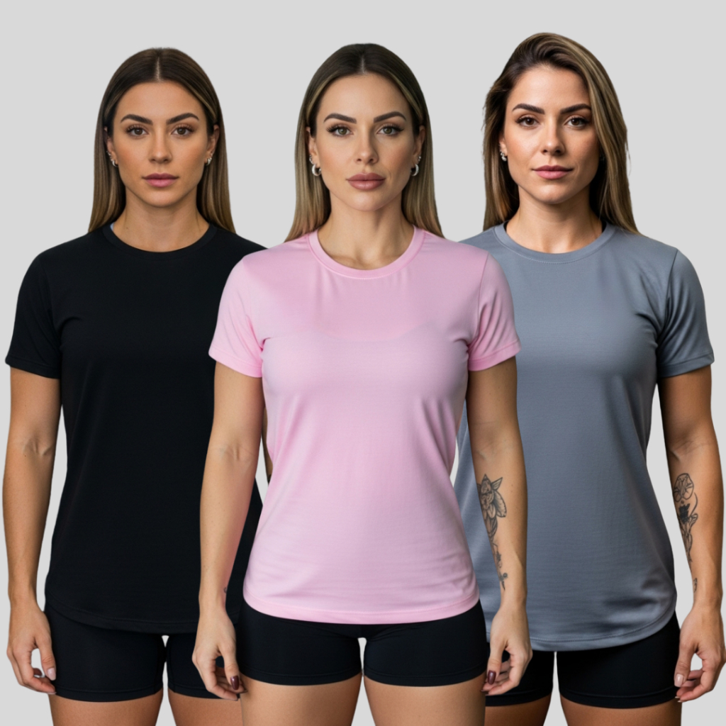 Kit 3 Camisetas Femininas Dry Fit Movimento Livre Academia – Treino e Atividades