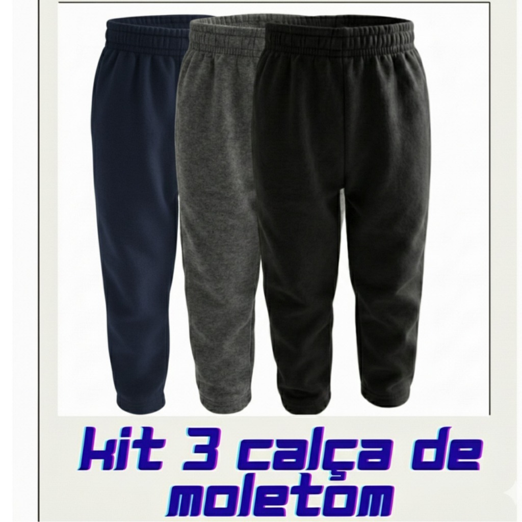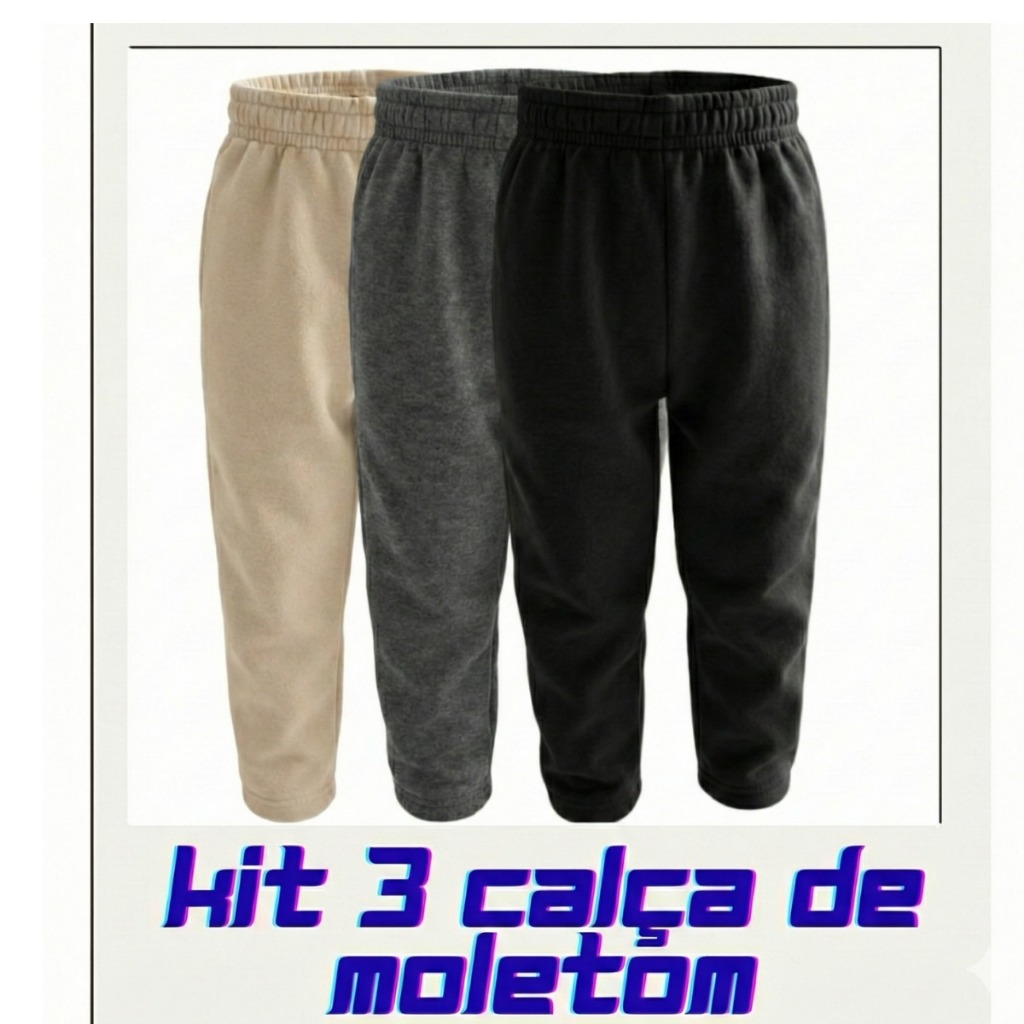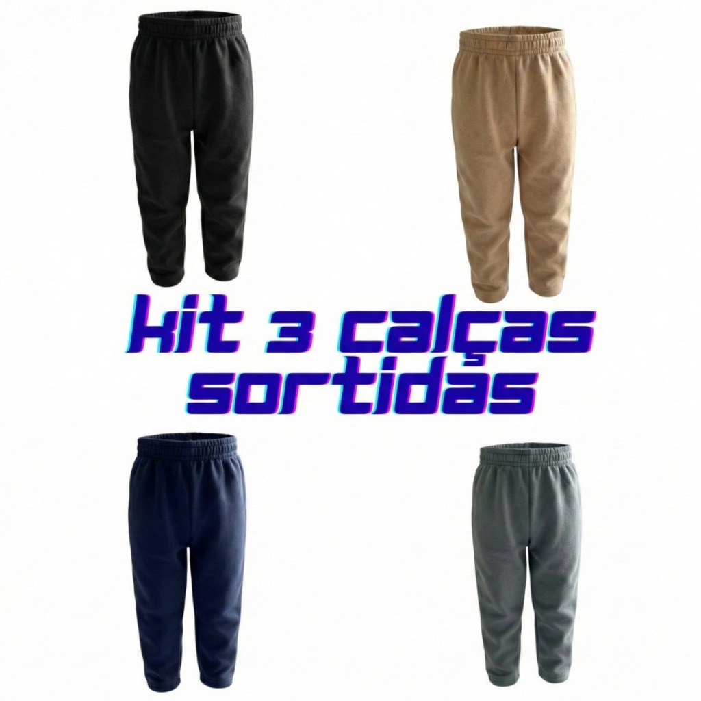 Kit 3 Calças Infantis Moletom Peluciado Unissex Conforto Premium