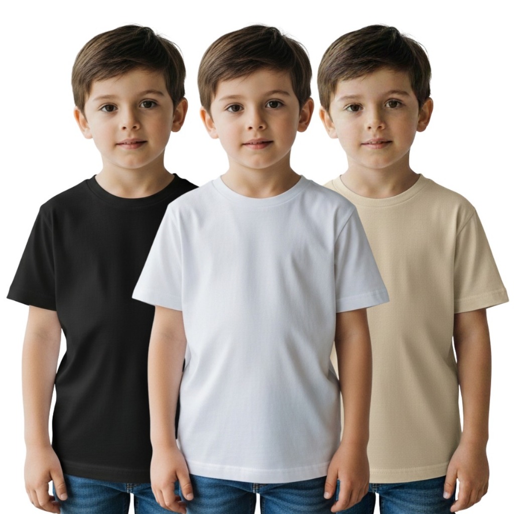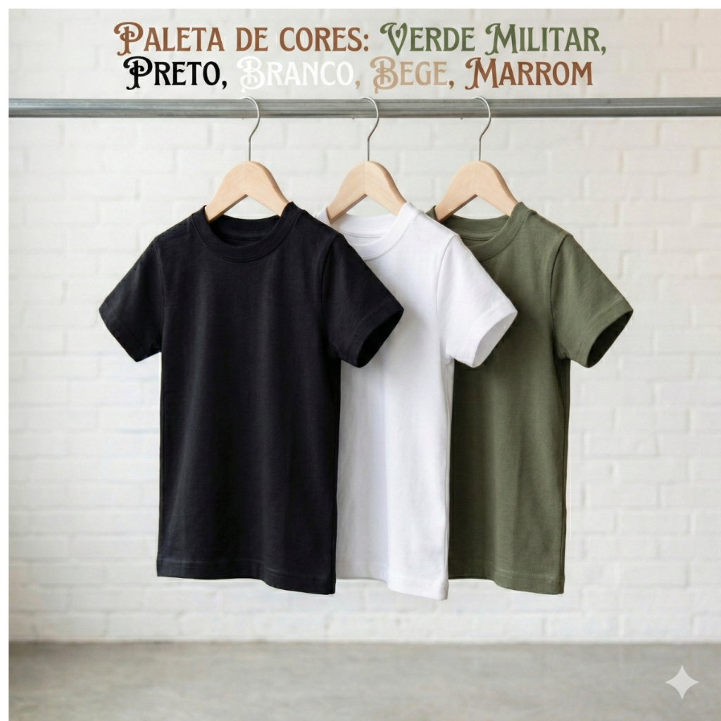 Kit 3 Camisetas Infantil Básica Unissex Algodão Lisa - Conforto Leve Para o Dia a Dia
