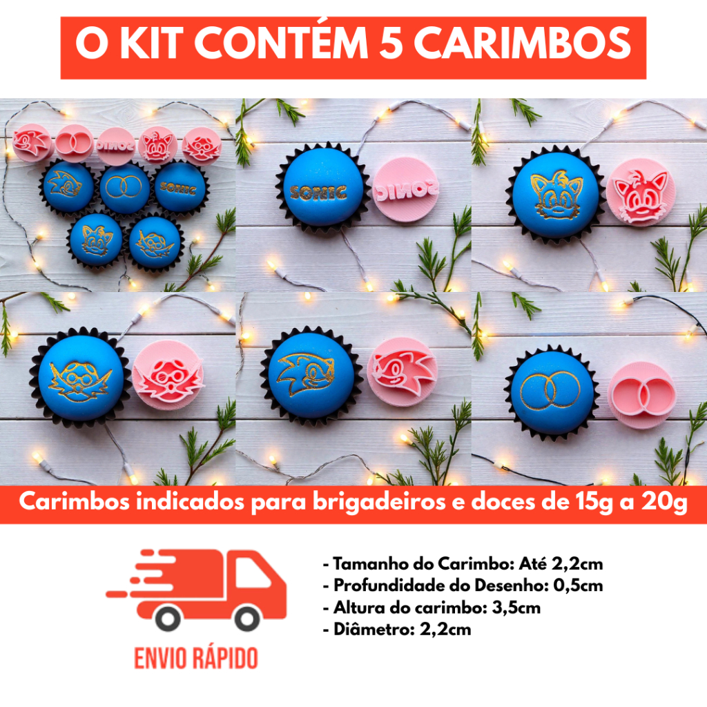 Kit Carimbos Para Doces Sonic para Brigadeiro, Massa e Biscoito - 5 Peças