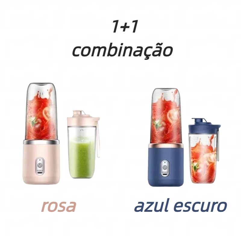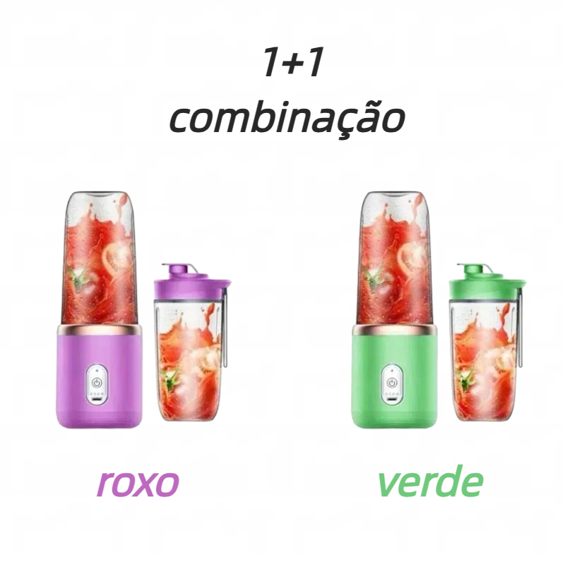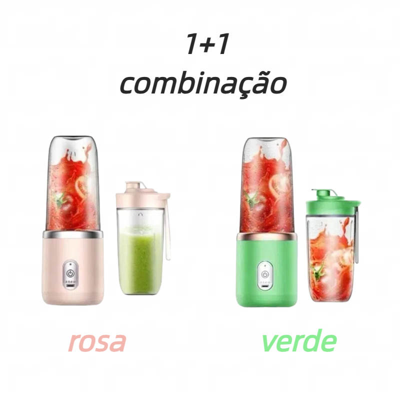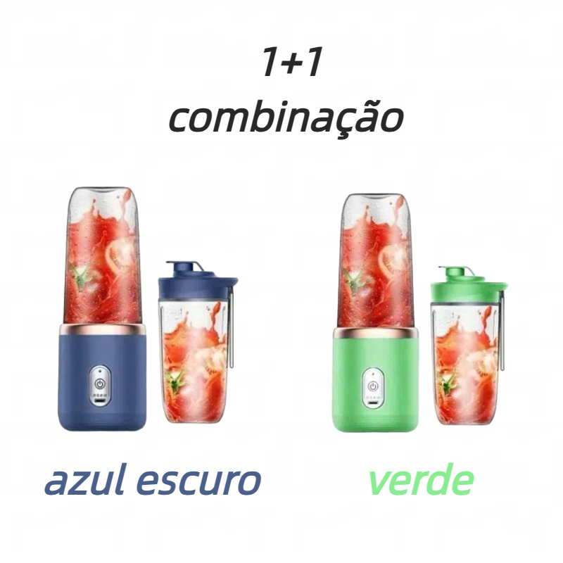 Mini Liquidificador Portátil Mixer Shake Juice 400ml + Copo Extra. Com 6 lâminas, Bate, tritura, mistura sucos, molhos