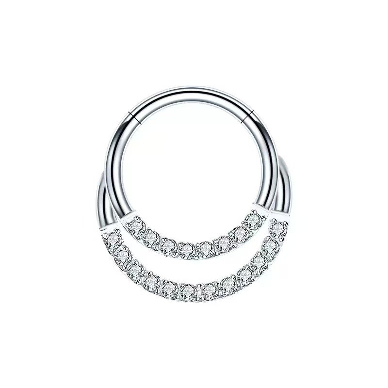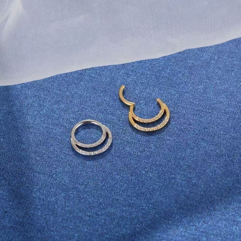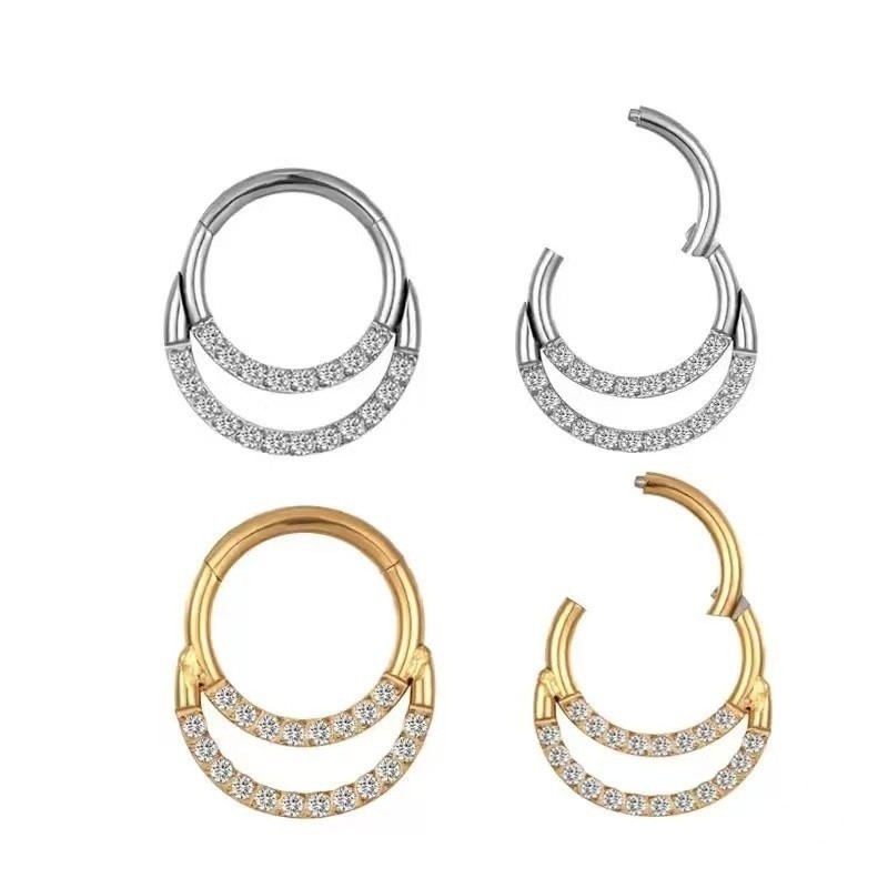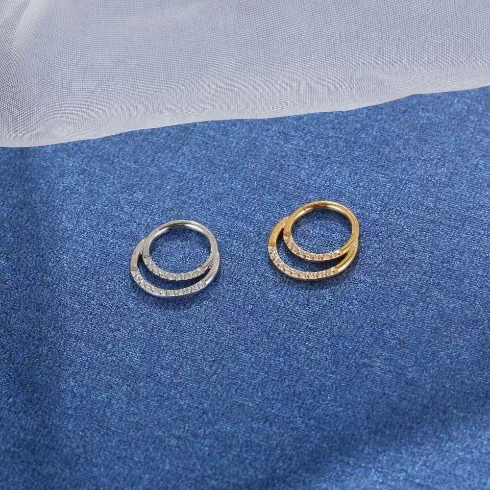G23 Piercing argola dupla cravejada em zircônia em titânio articulada daith, septo, cartilagem ,helix Moda