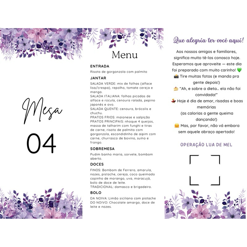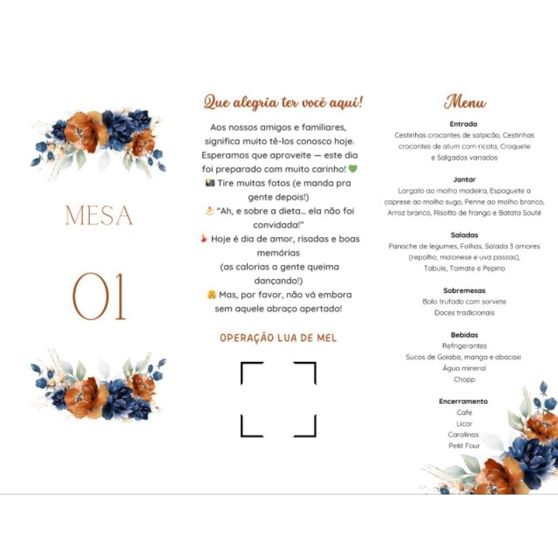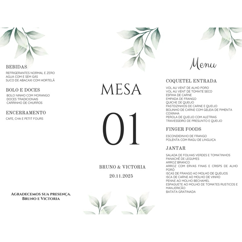 Menu Triangular com Número de Mesa Personalizado para Casamento Festas Aniversários Eventos