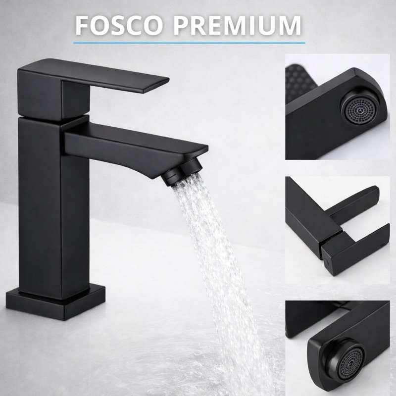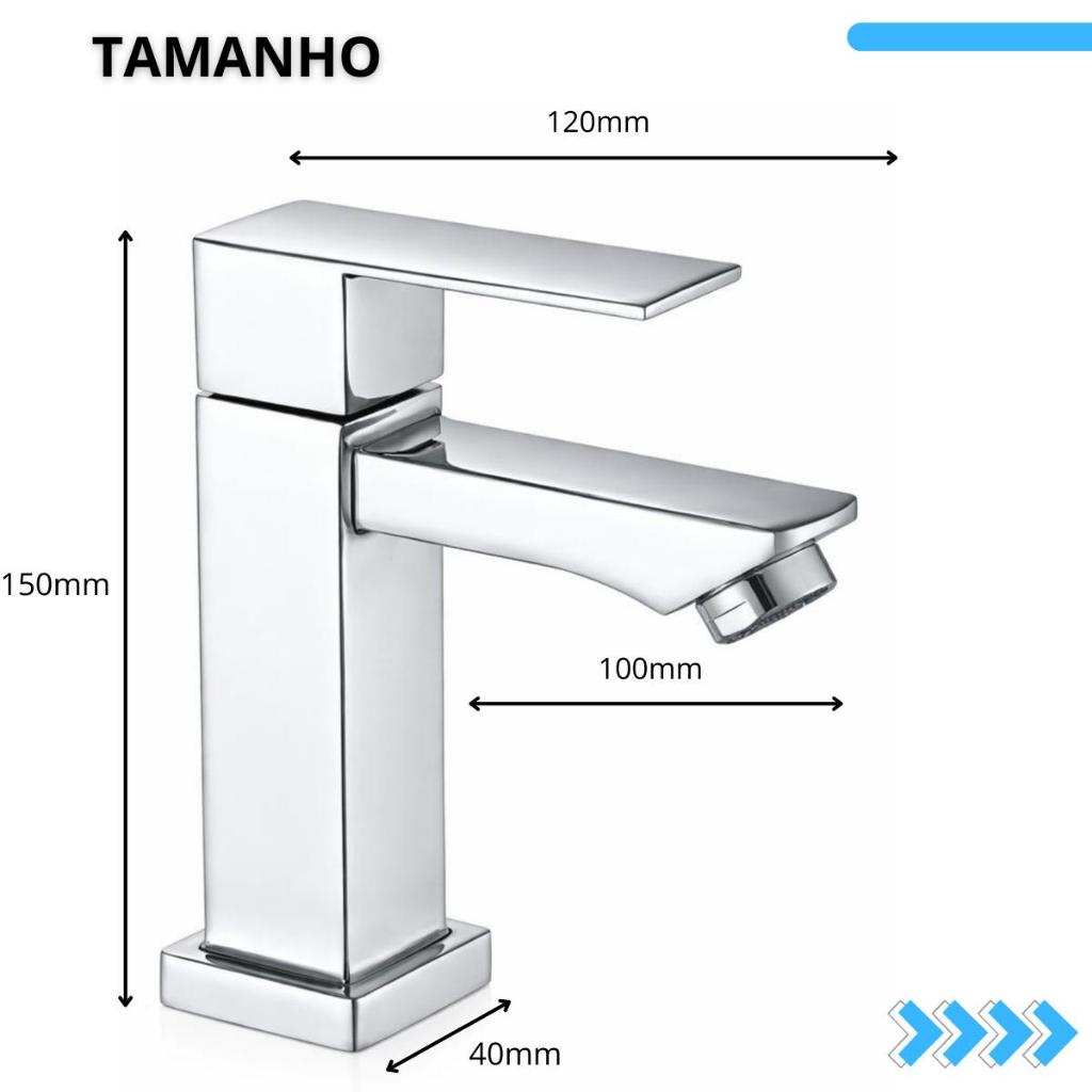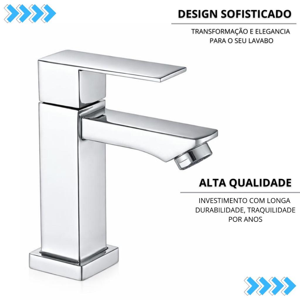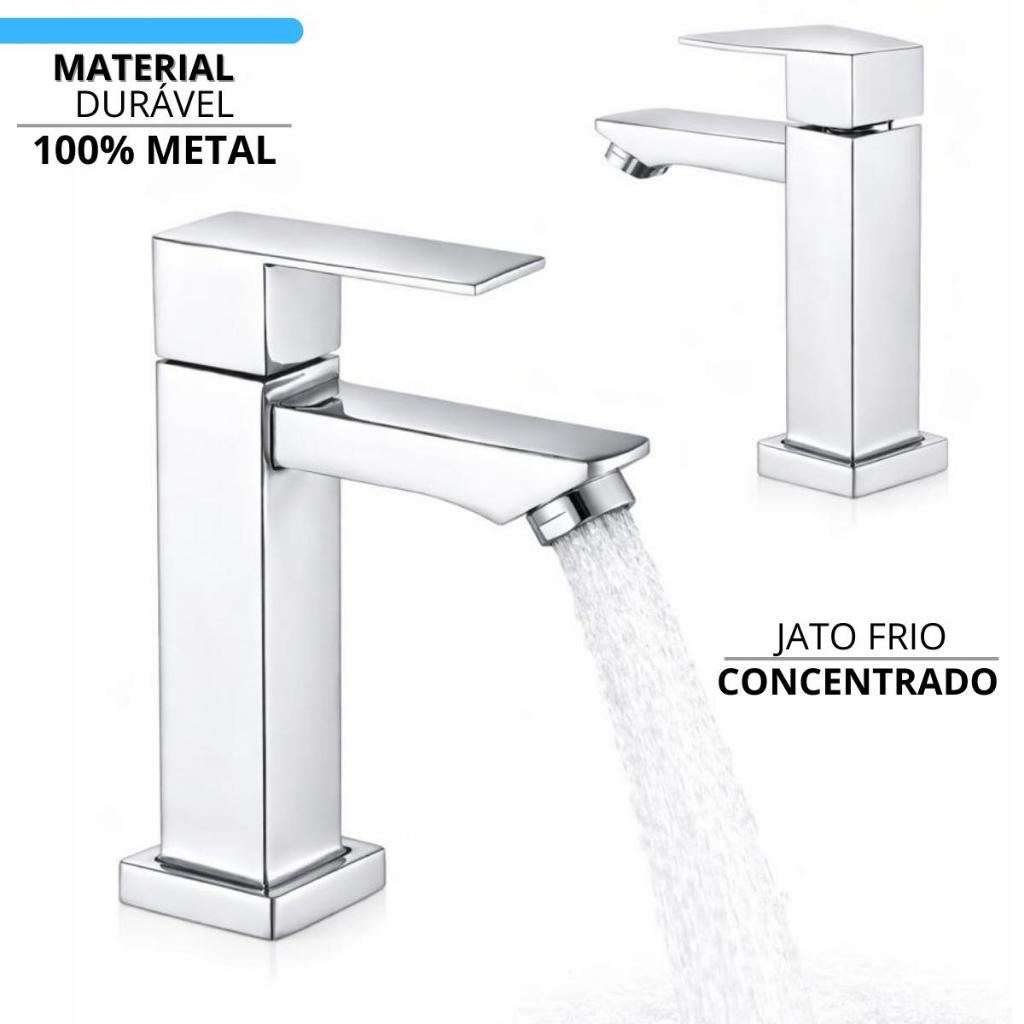 Torneira Banheiro 100% Metal Brilhante Luxo Quadrada Lavabo Água Fria