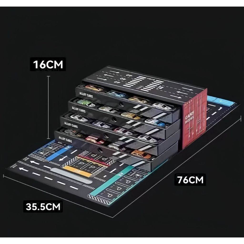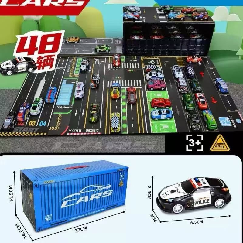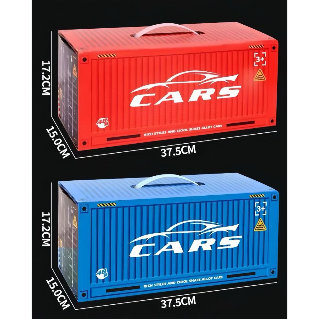 Kit 48 Carrinhos de Lata Metálica com Fricção - 8758 Coloridos Caixa Container que Vira Pista