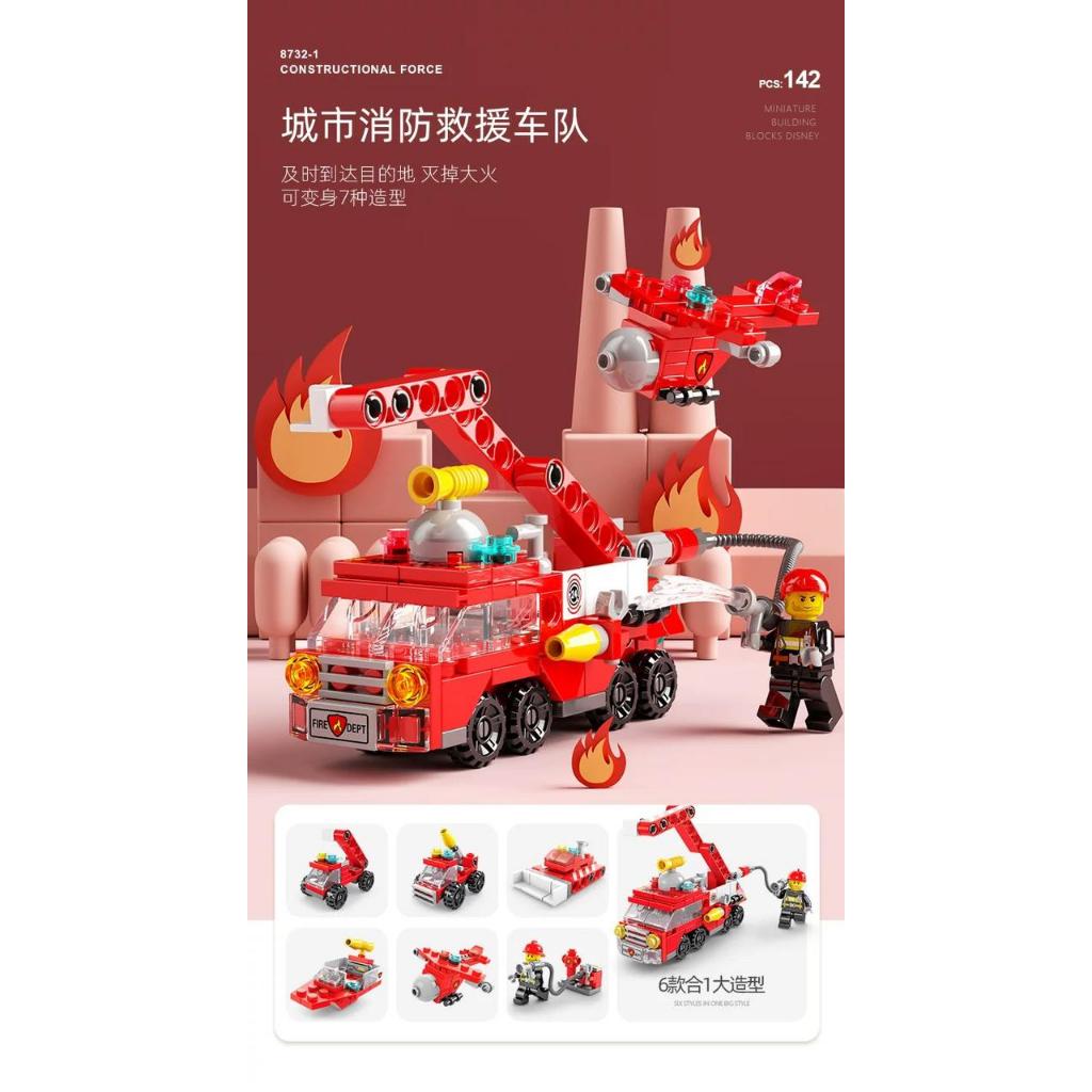 Blocos De Montar 6 em 1 Construção Bricks Bombeiros 142 Pcs