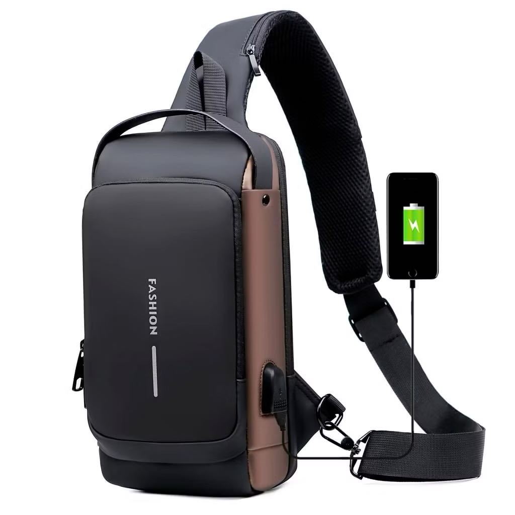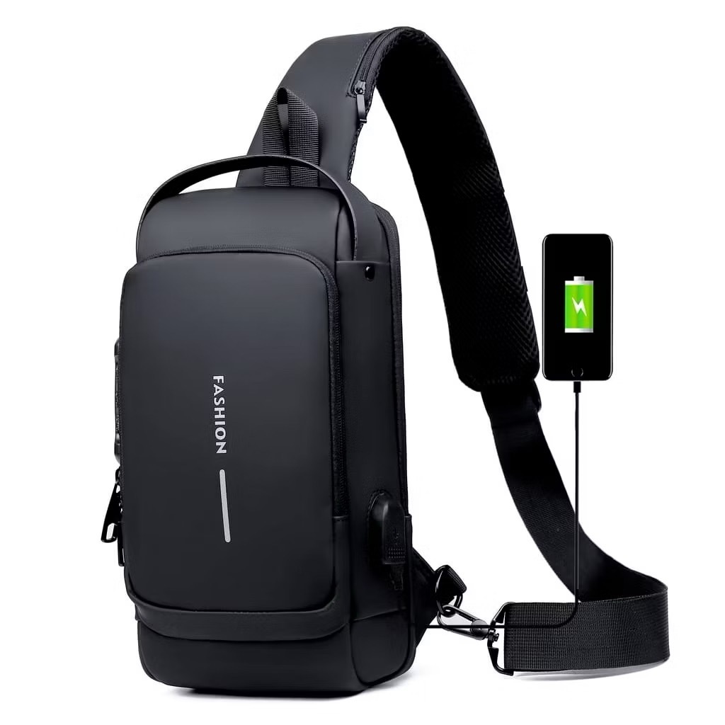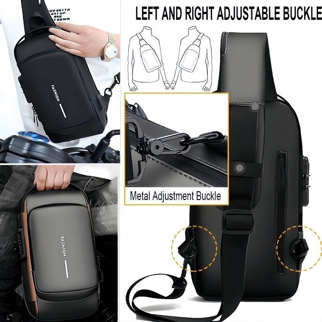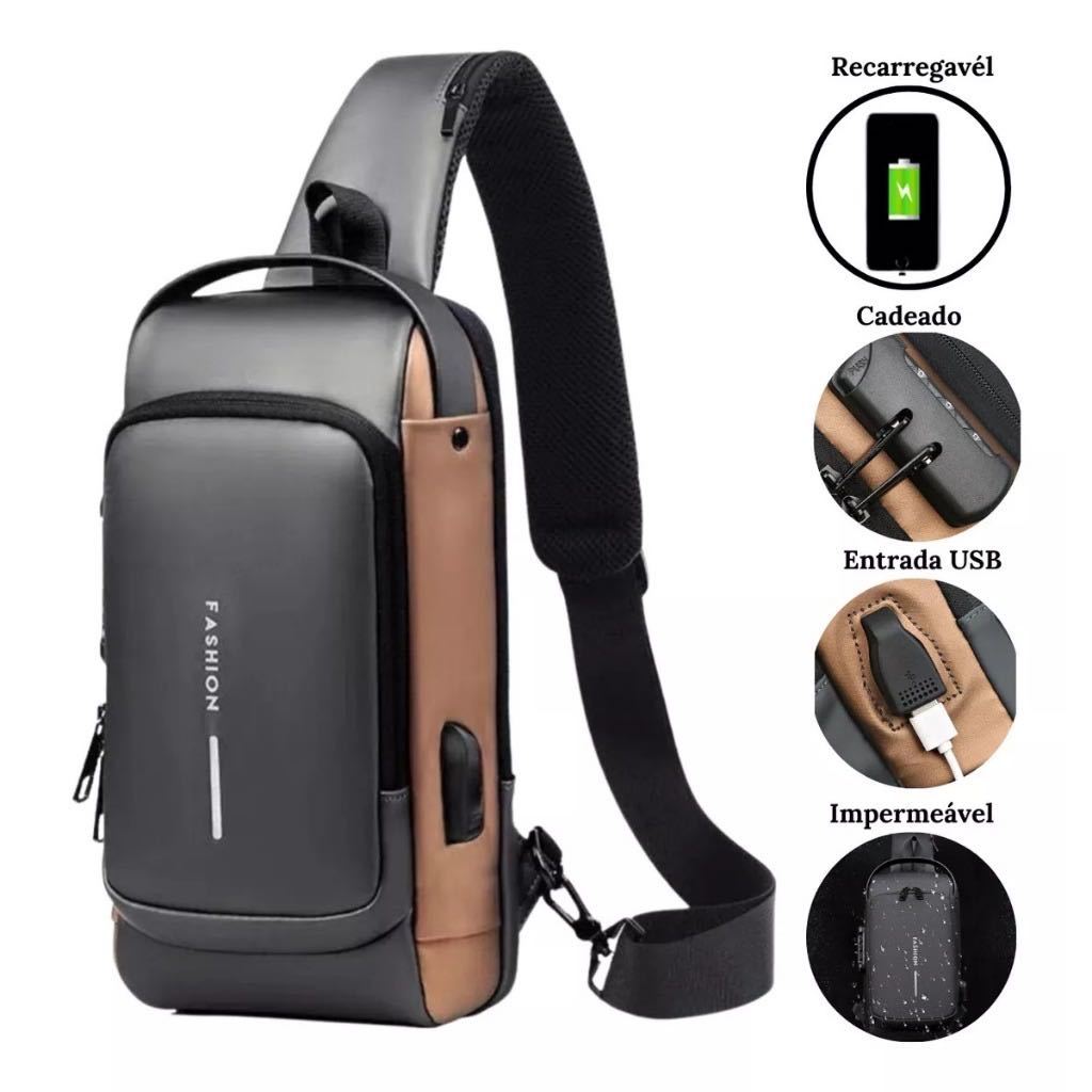 Bolsa Masculina Pochete Transversal Cadeado Ombro Impermeável Tecido Liso Antifurto Bolsa De Peito