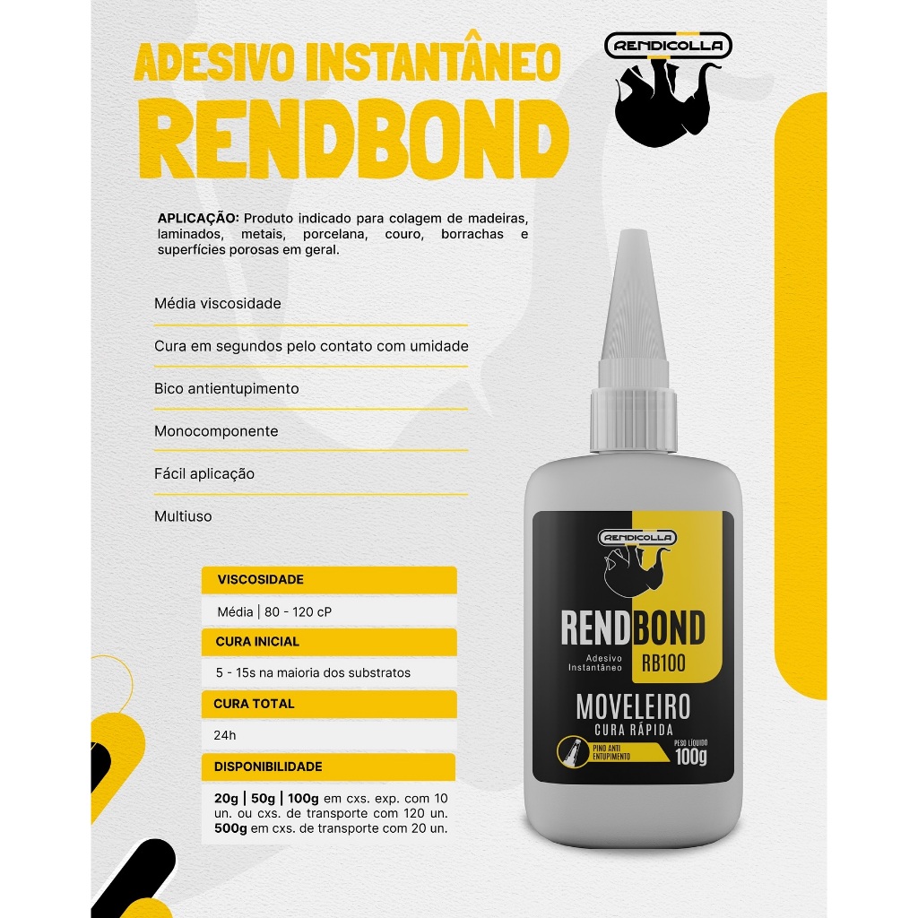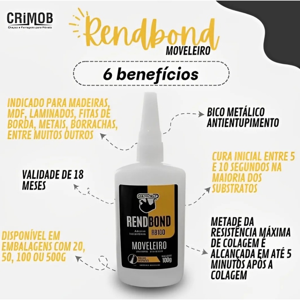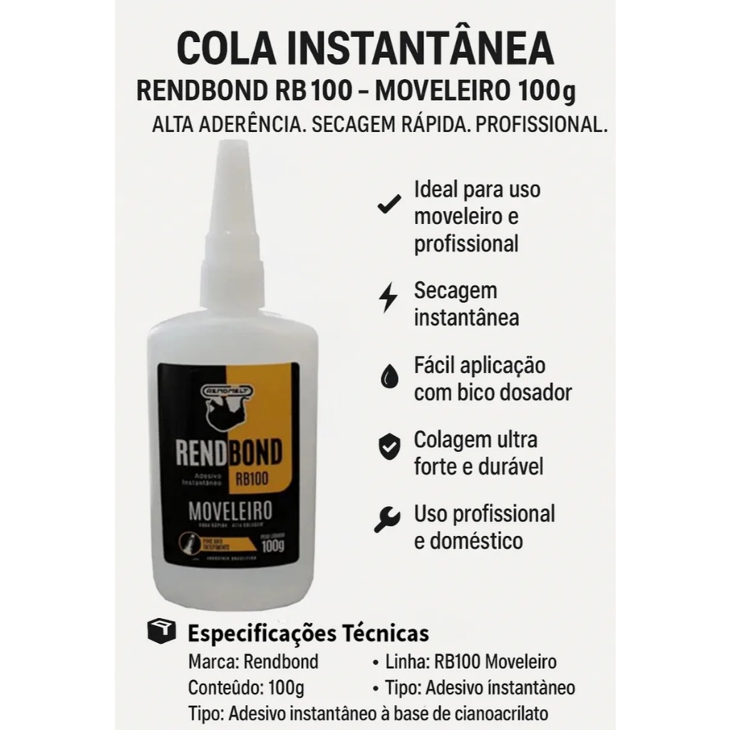 Cola Rendbond 100g Rendicolla Adesivo Multiuso Para Madeira, Papel, MDF e Artesanato