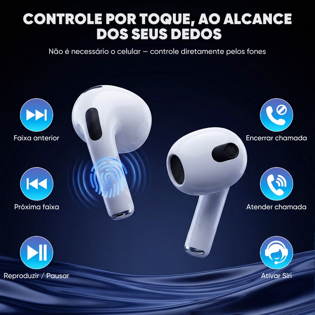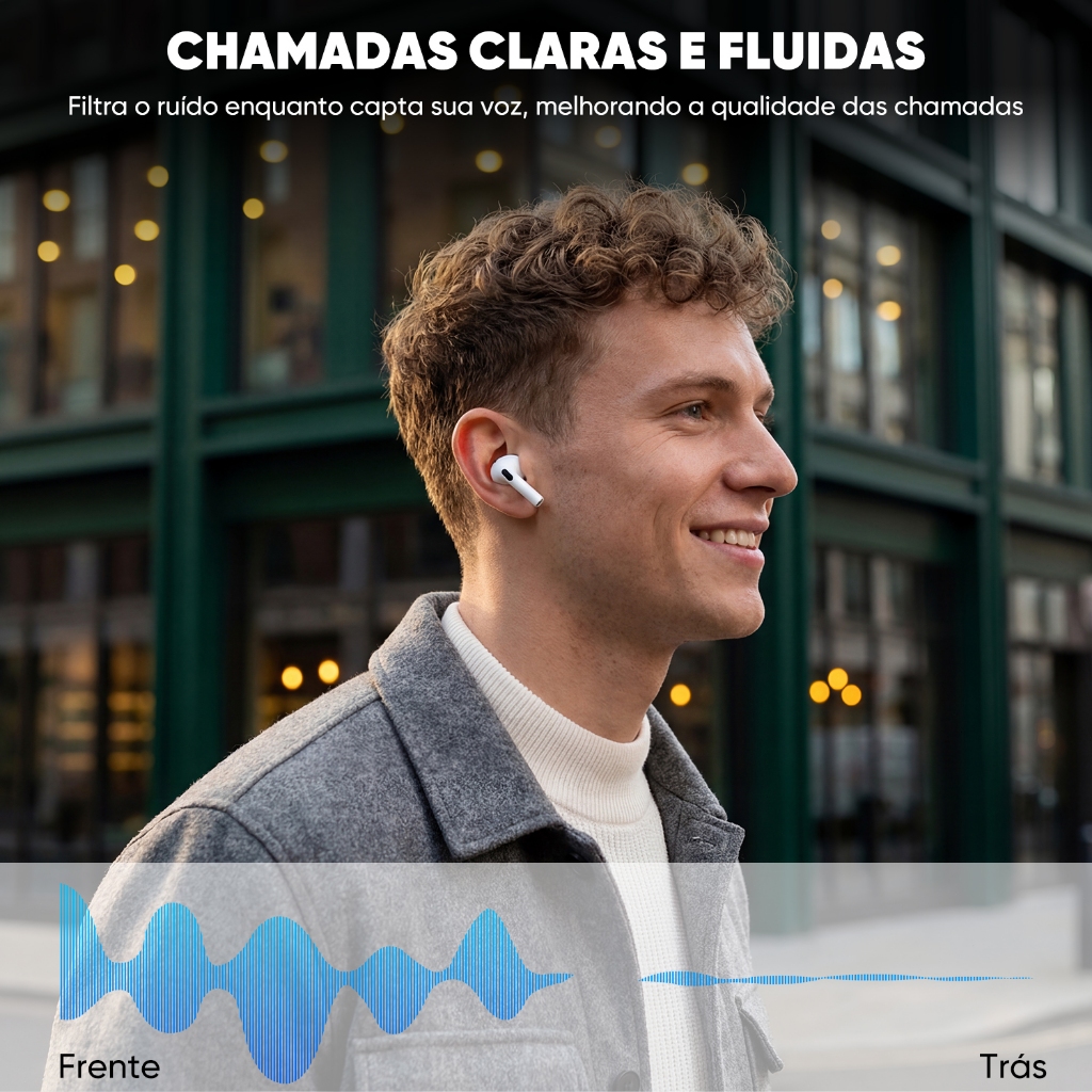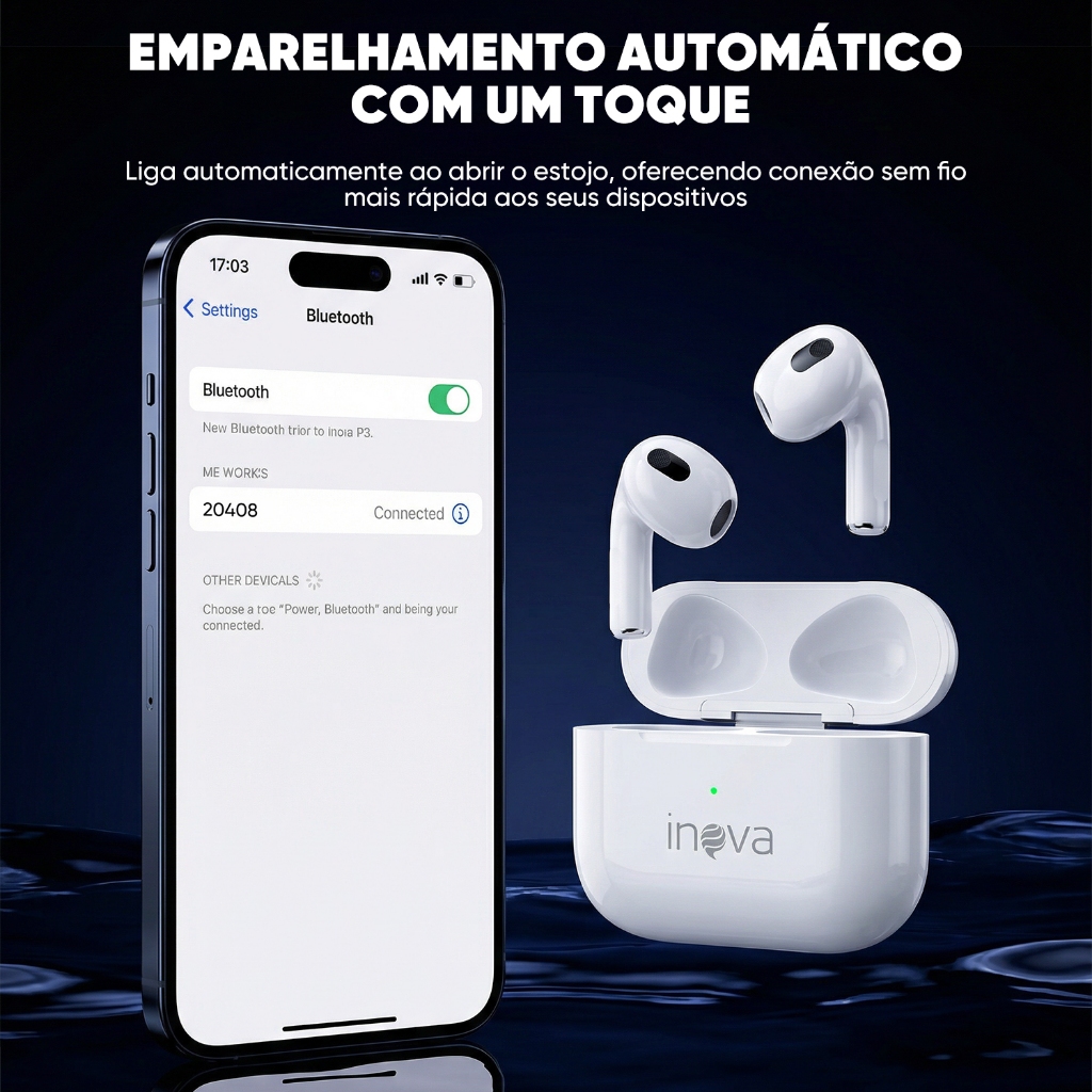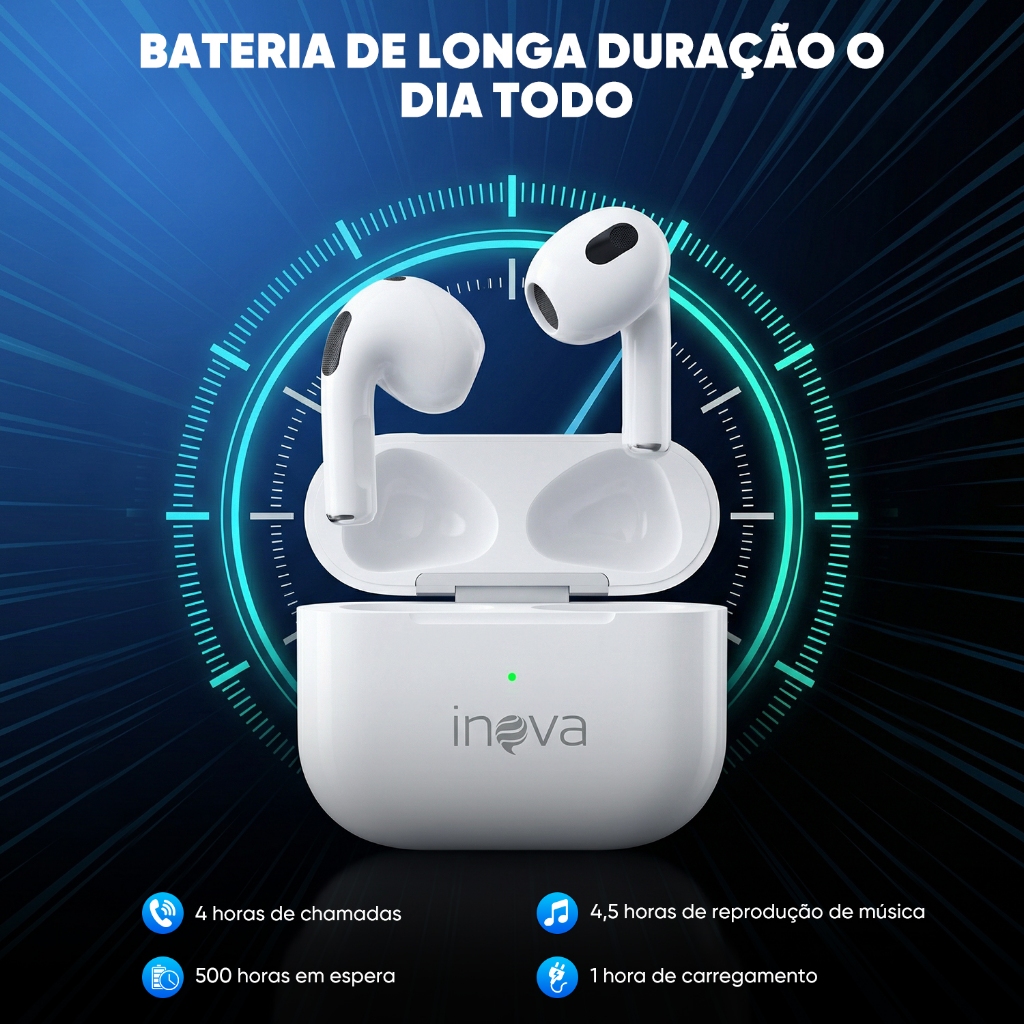 【Original】INOVA Fone de Ouvido Bluetooth TWS Bateria de Longa Duração Som Hi-Fi Touch Design Elegante iOS/Android