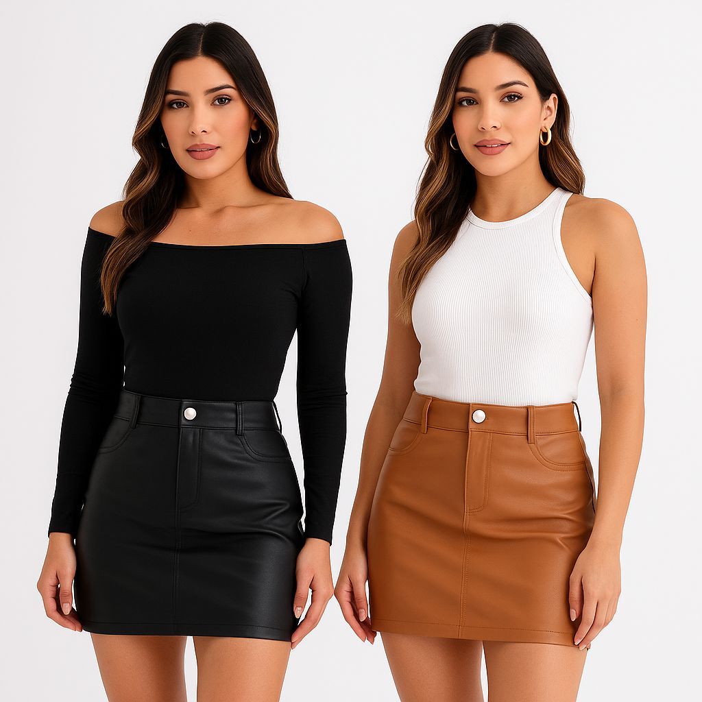 Mini Saia Feminina em Couro Sintético – Moderna, Versátil e Confortável e Elegante