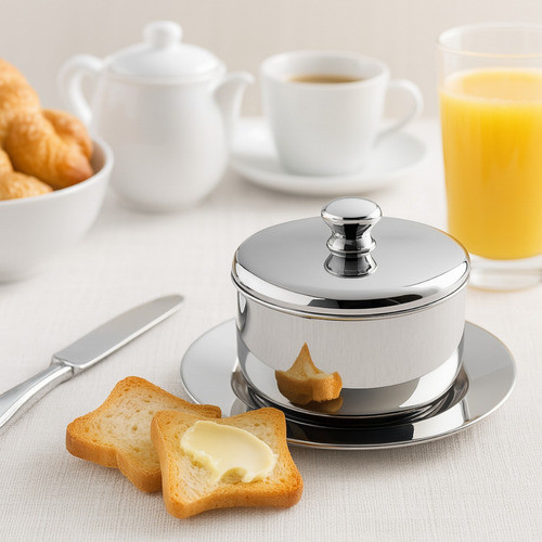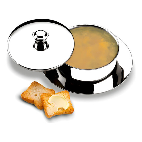 Mantegueira Redonda Inox Com Pires Tampa Porta Manteiga Mesa