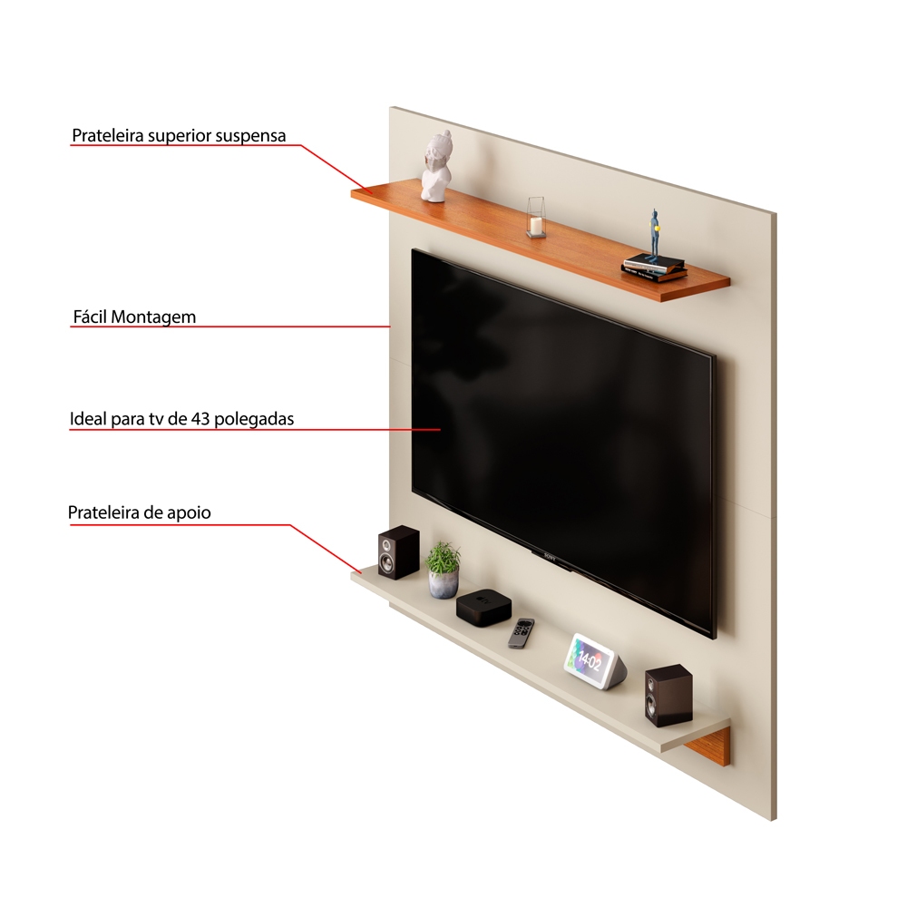Painel Home Estante Rack para TV até 43 Polegadas com 2 Prateleiras Moderno Várias Cores