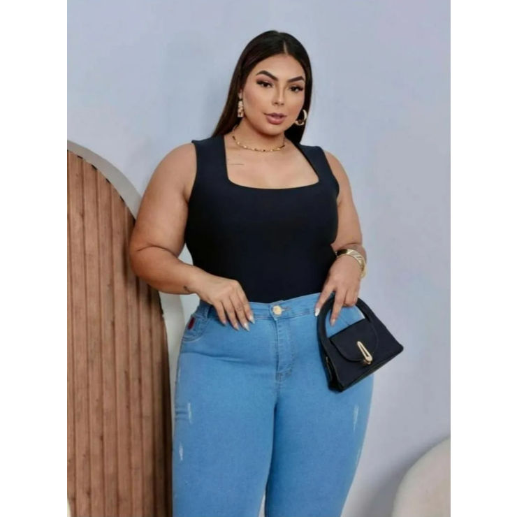 Body Bory Plus Size Regata Quadrado Maio - Zero Transparênçia Forrado!