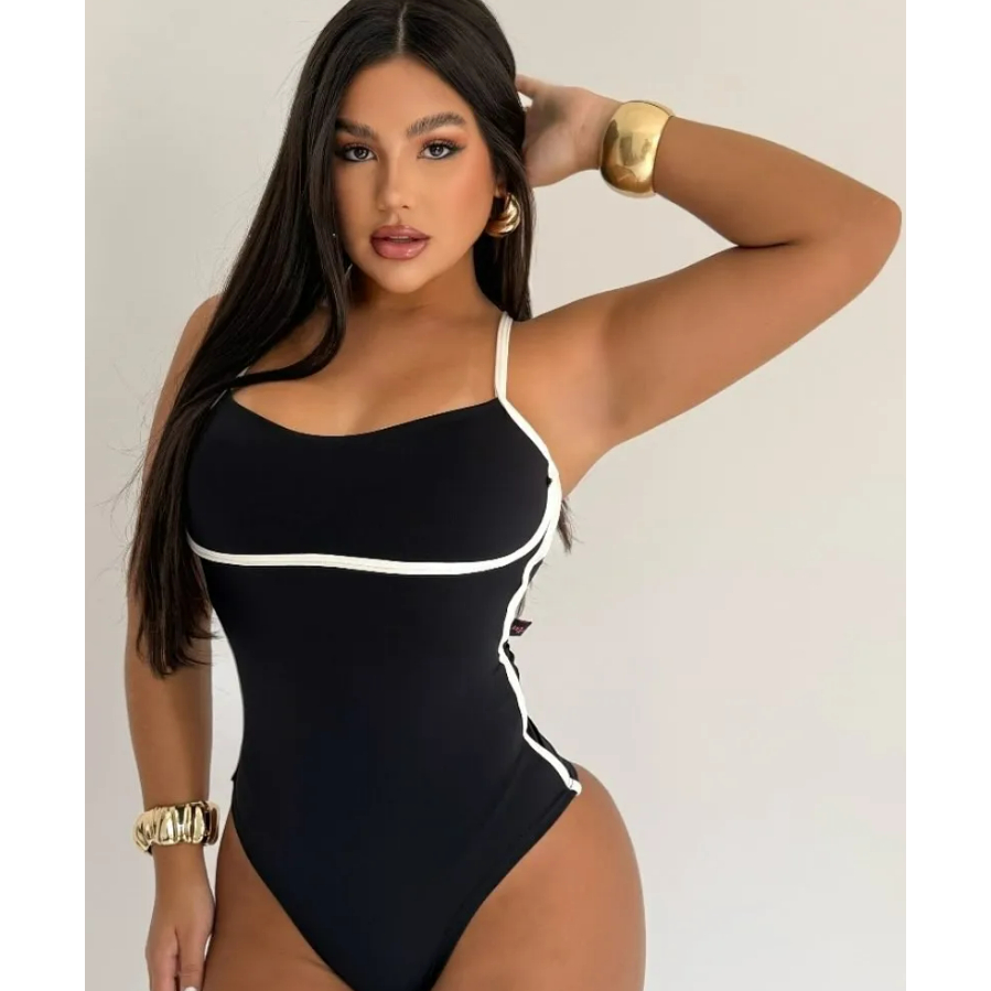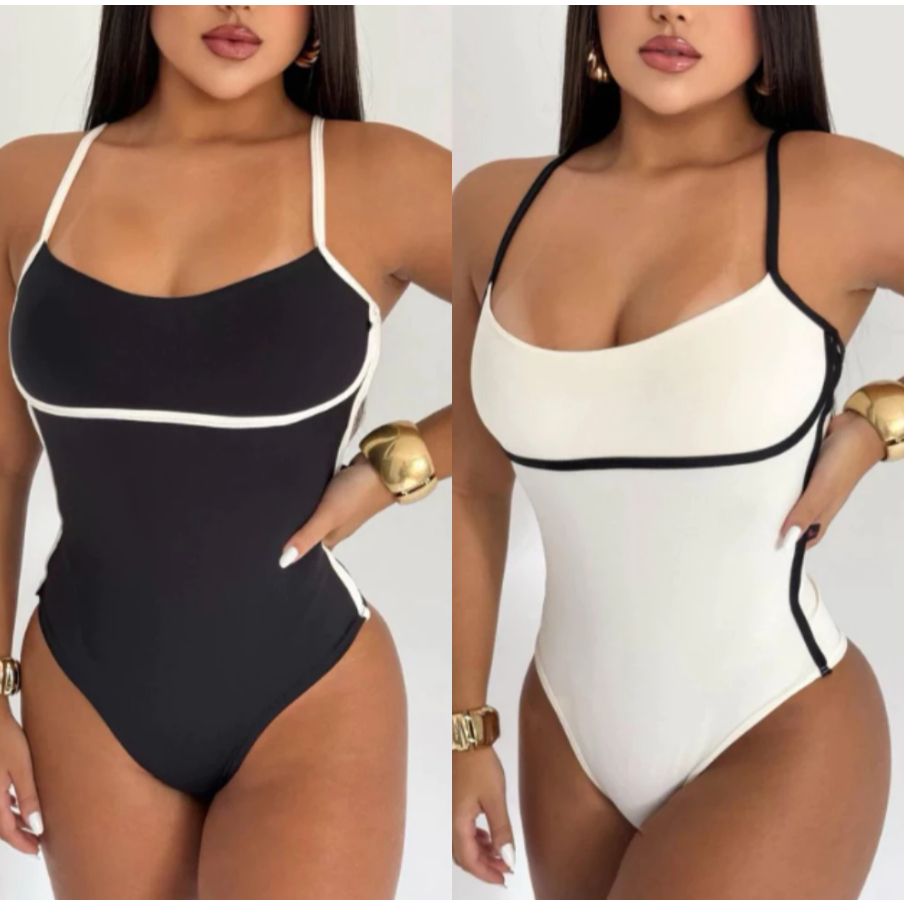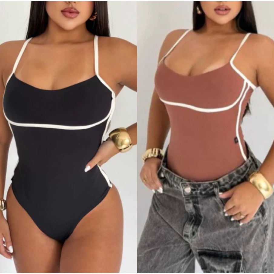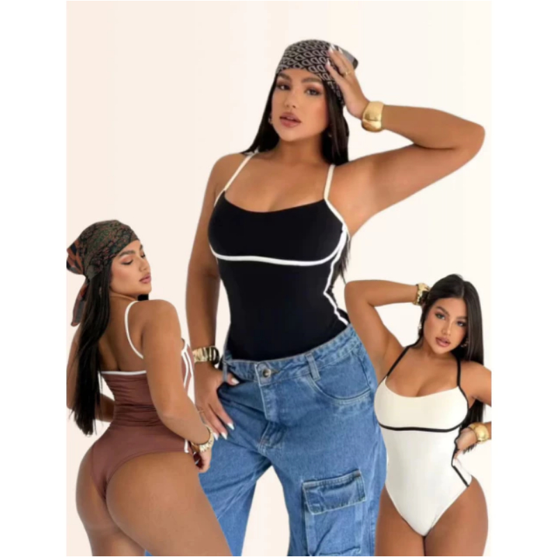 Kit Body Feminino Maiô Bicolor Bory Ely Alça Fina Cavado Com Bojo Sustentação de Alcinha Suplex Premium
