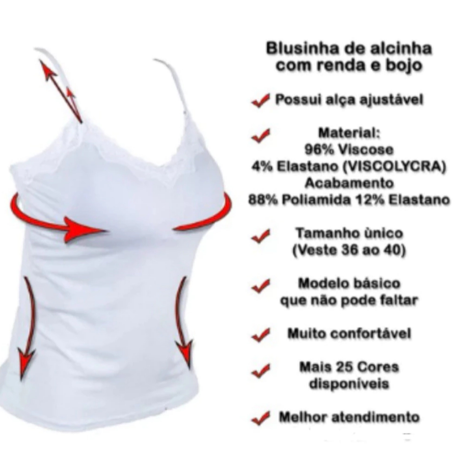 Blusinha Viscolaycra Feminina Alcinha Bojo Renda Algodão Divervas Cores !