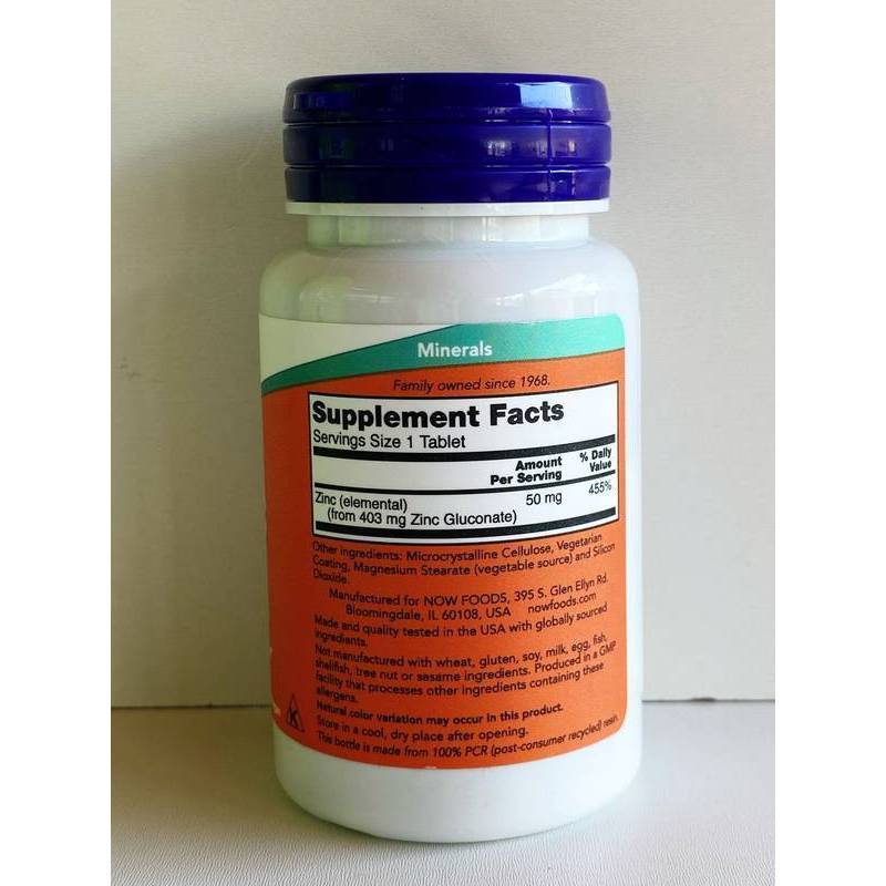 Zinc Gluconato De Zinco Mineral Essencial 50mg 100 Comprimidos - Now Foods