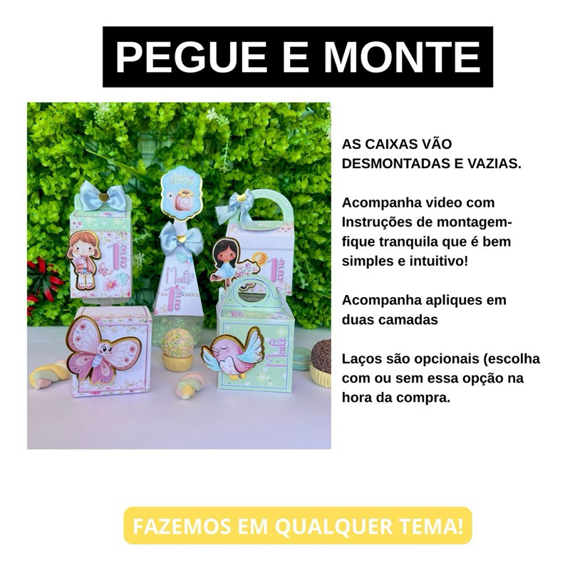 Kit Pegue e Monte – Caixinhas Personalizadas Lembrancinhas Festa Infantil - Aniversário - jardim encantado