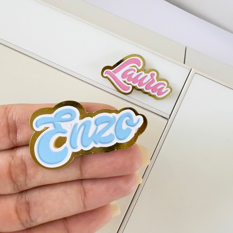 Aplique 3D Nome Personalizado | Papel 240g + Lamicote Dourado/Prata | Lembrancinha Festa