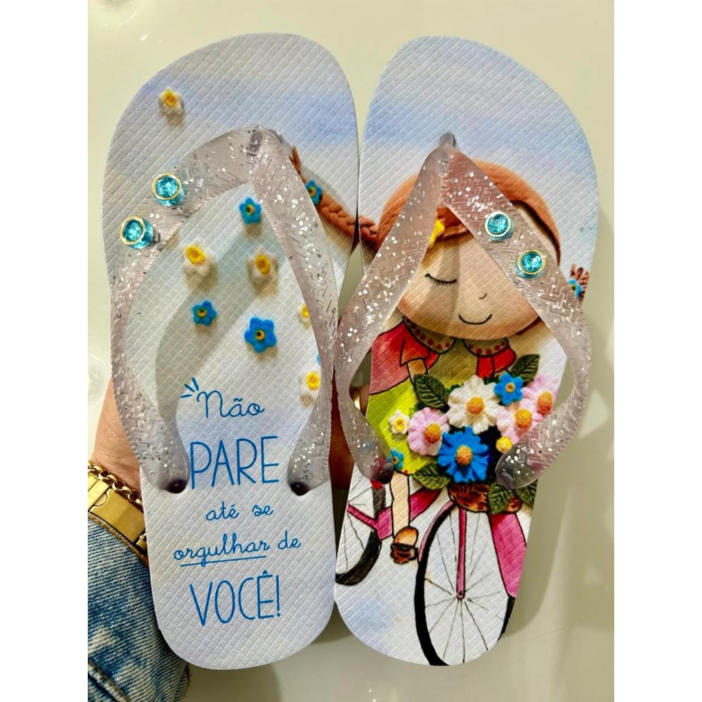 Chinelo Sandália Feminina Estampas Motivação Seja Flor por Onde For Slin Dia a dia Durabilidade.