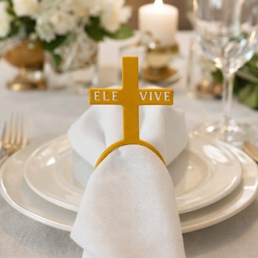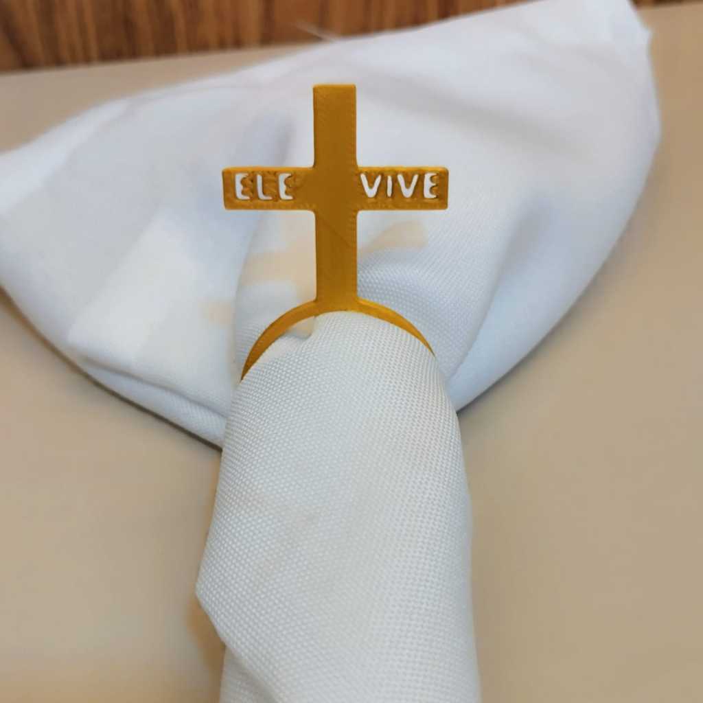 Anel Guardanapo Religioso Cruz Ele Vive Mesa Posta Cristã Igrejas Eventos Kit 4 / 6 / 8 / 12/ 24 Unidades