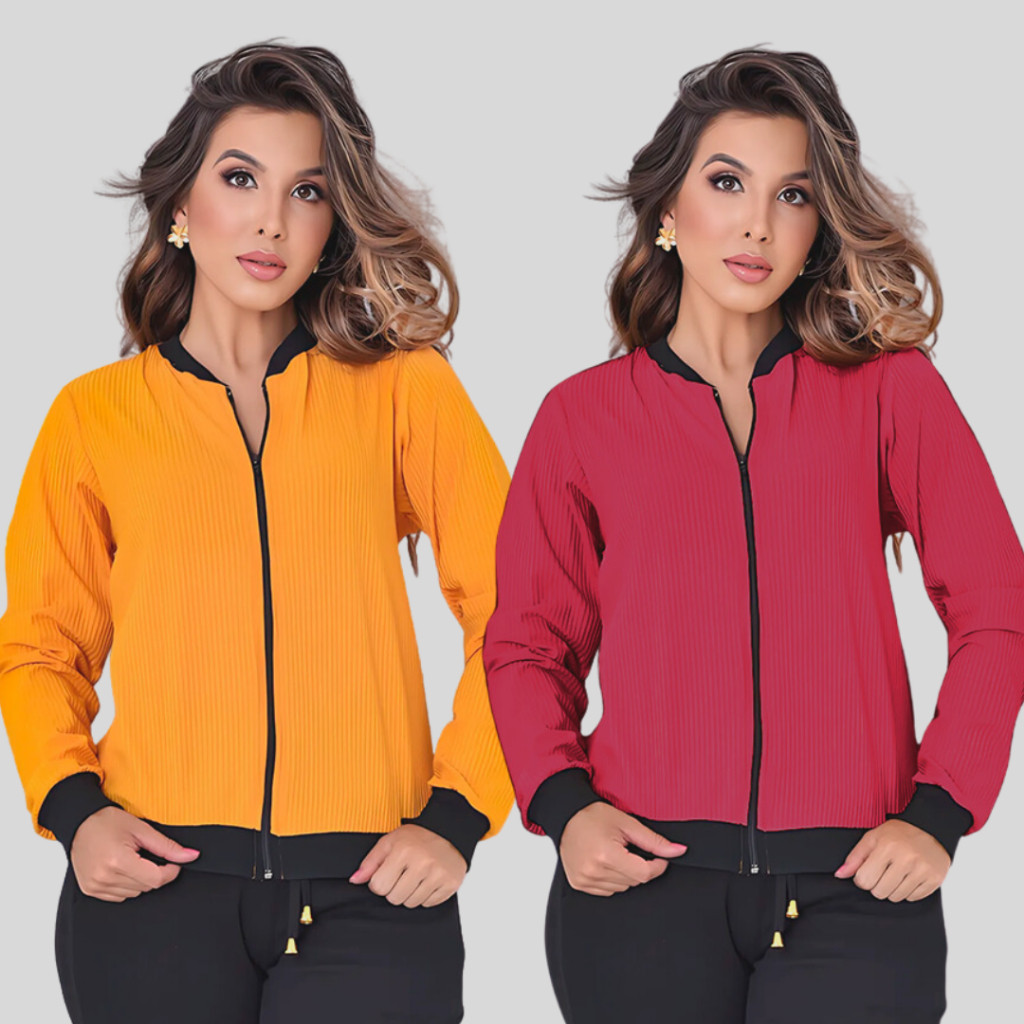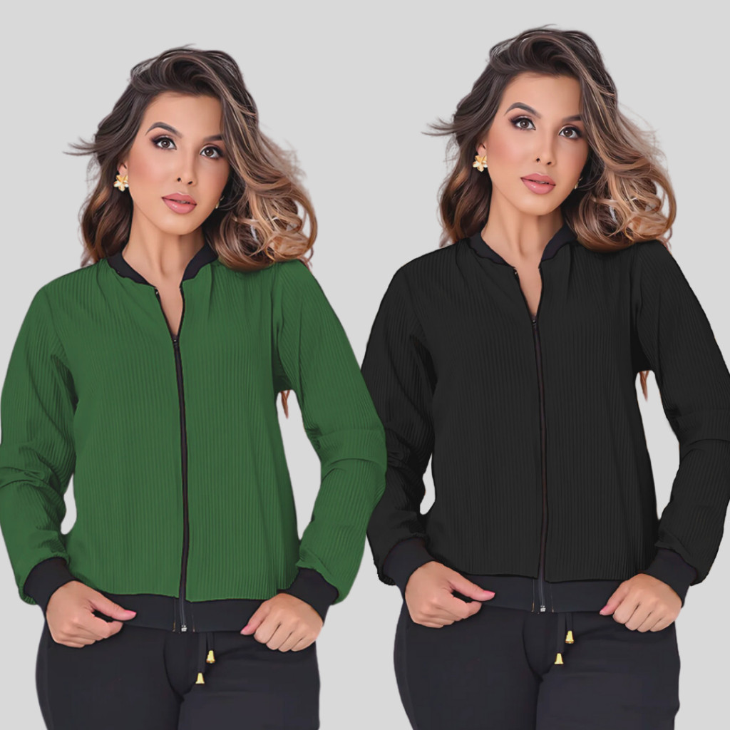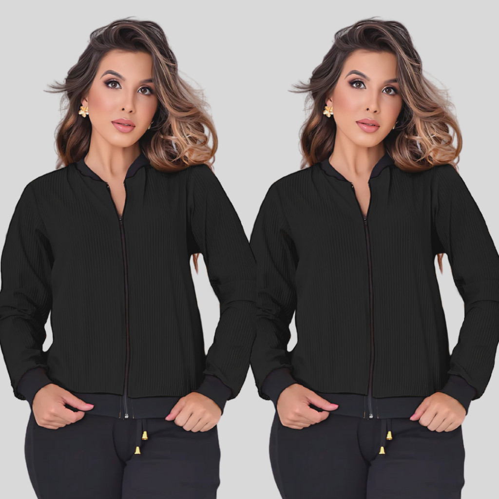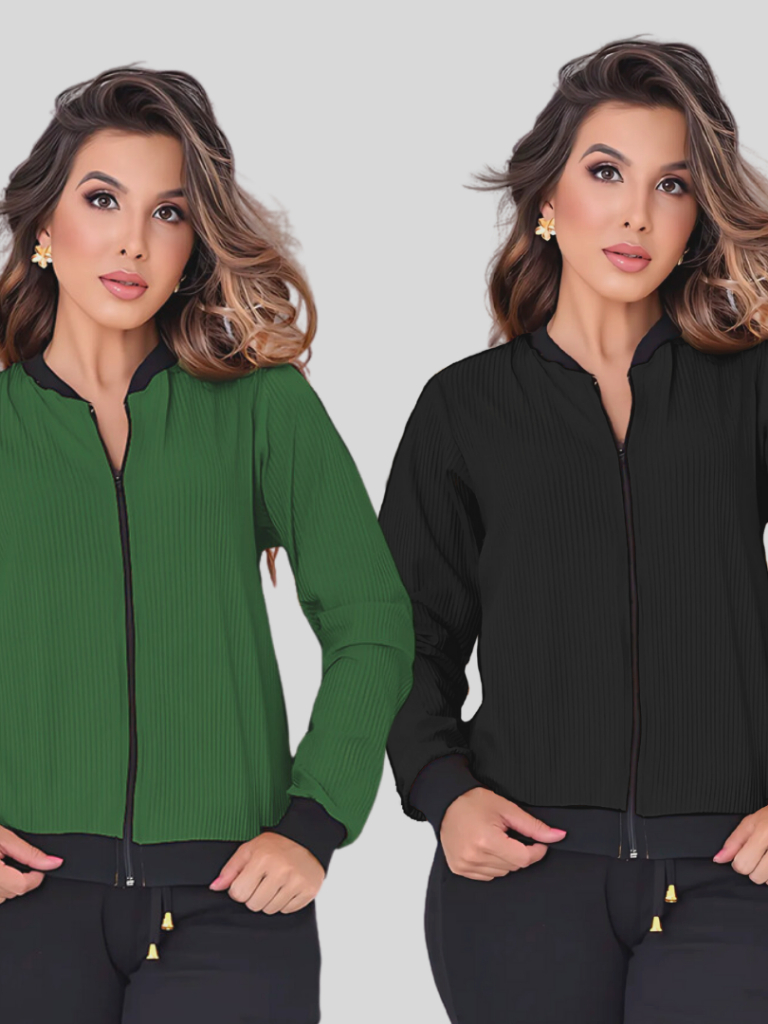 Kit Com 2 Jaqueta Bomber Feminina Casual Com Zíper Blusa De Frio Manga Longa Malha Canelada