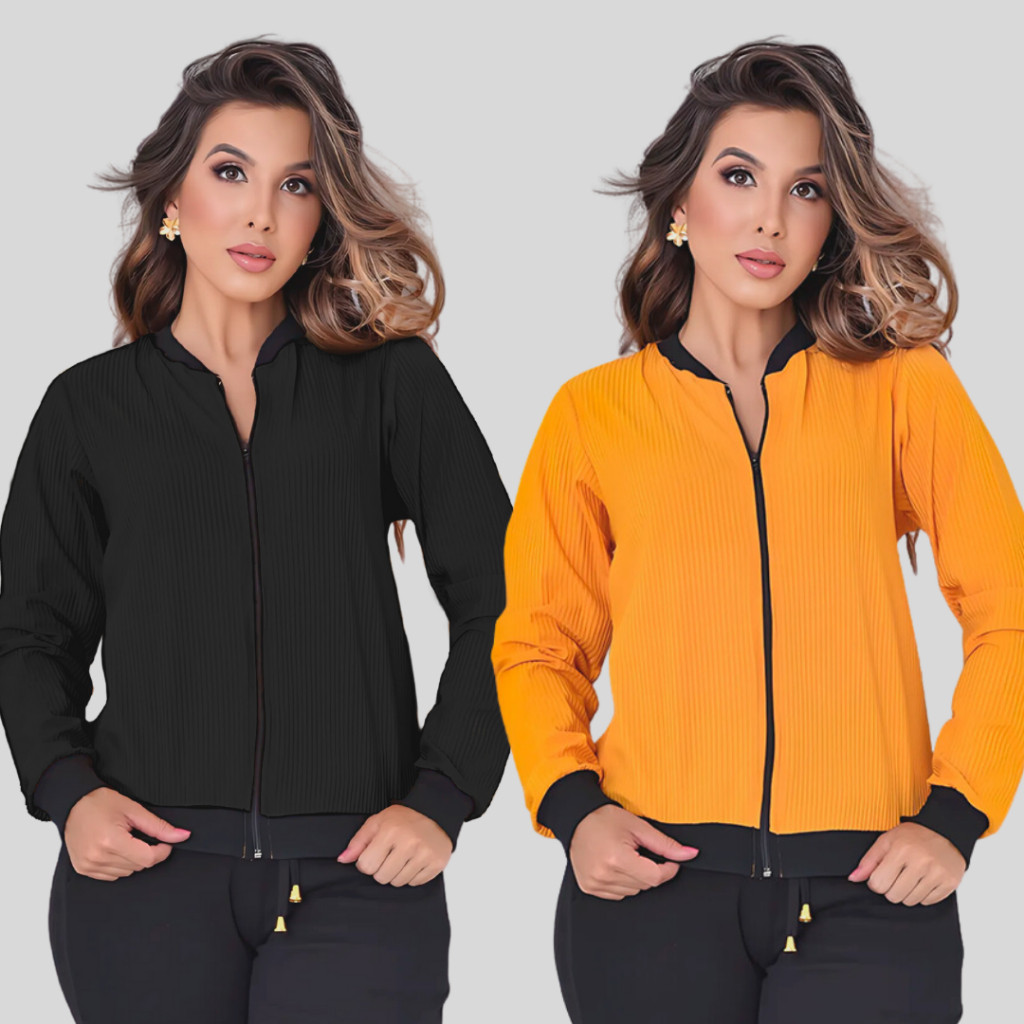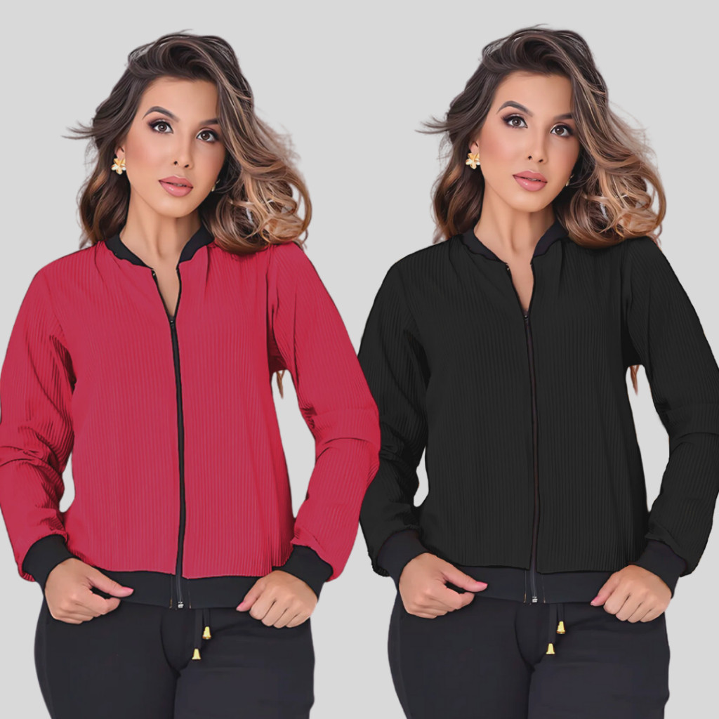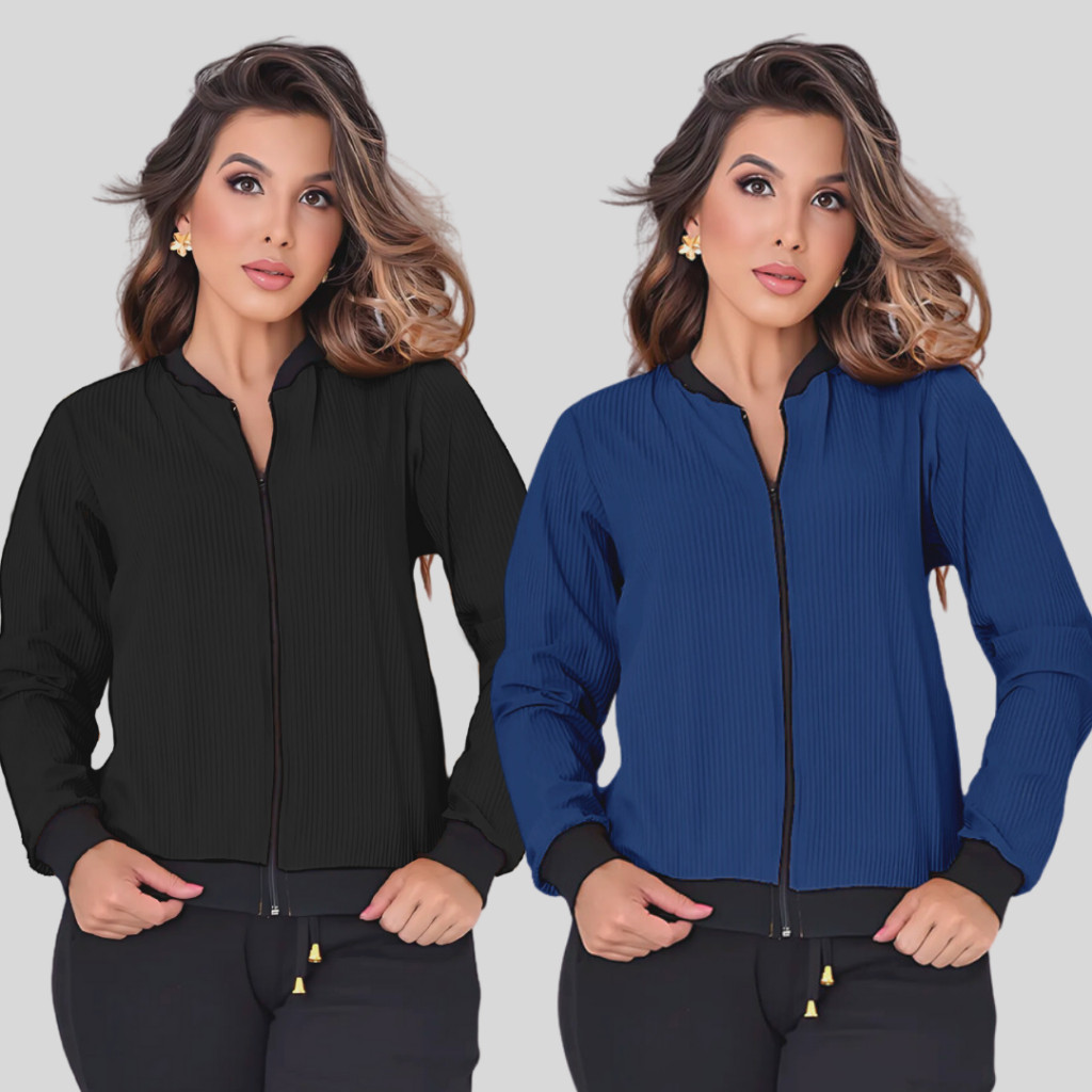 Kit Com 2 Jaqueta Bomber Feminina Casual Com Zíper Blusa De Frio Manga Longa Malha Canelada