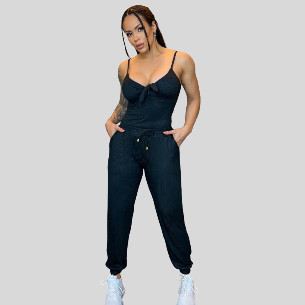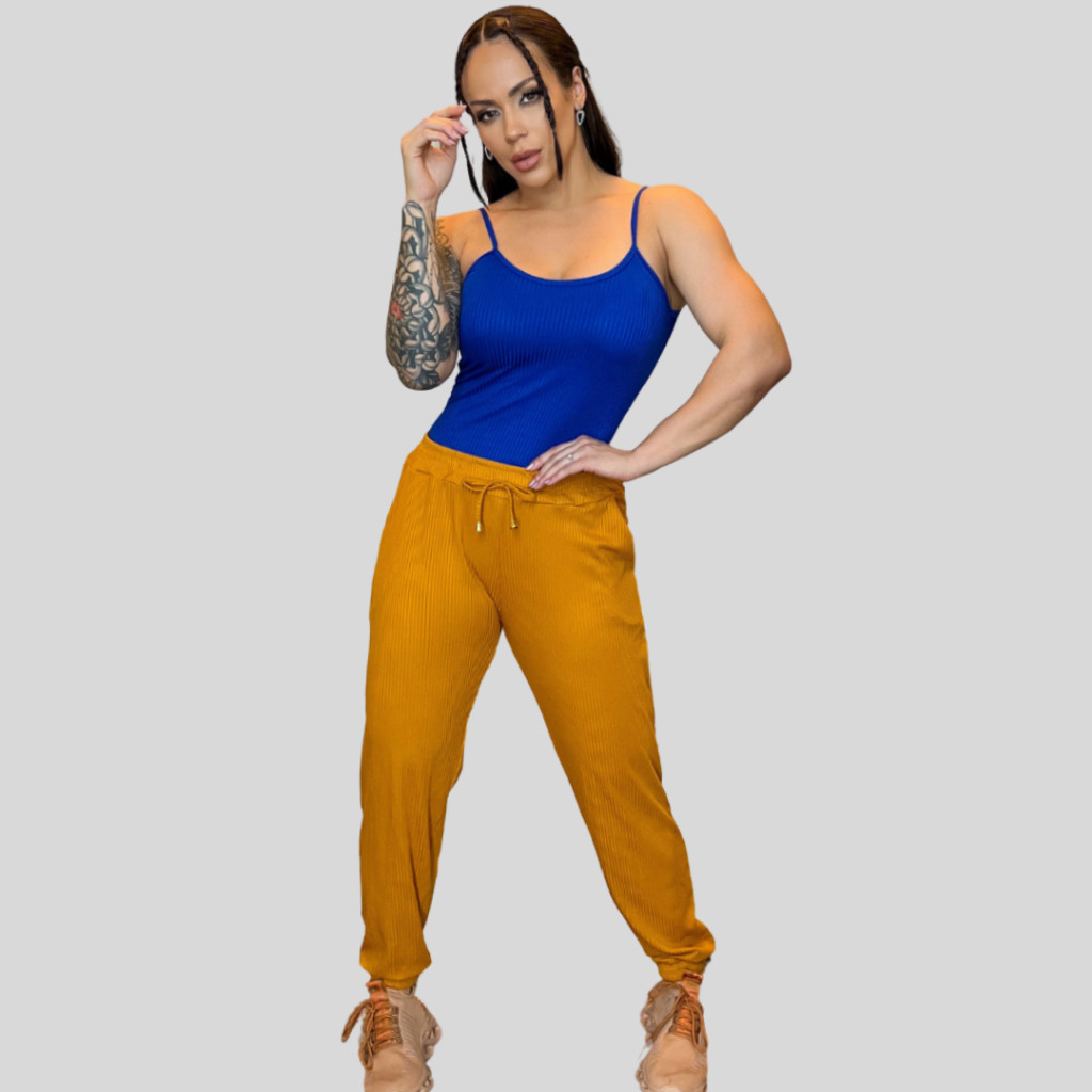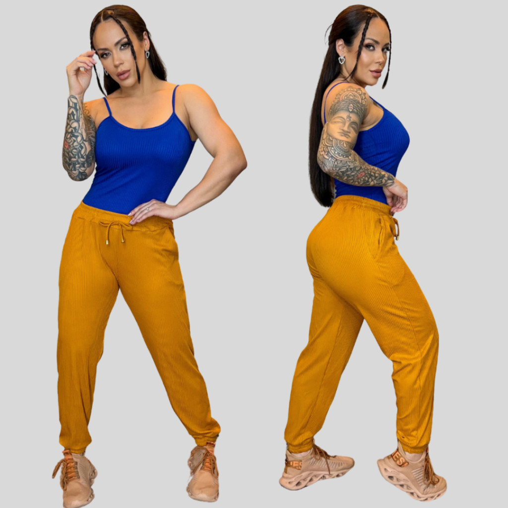 Calça Feminina Jogger Malha Canelada Premium Estilosa Com Bolso Legging Skinny
