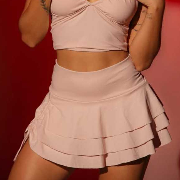 Saia Short Feminina Curta Com Babados Regulagem Lateral Suplex Premium
