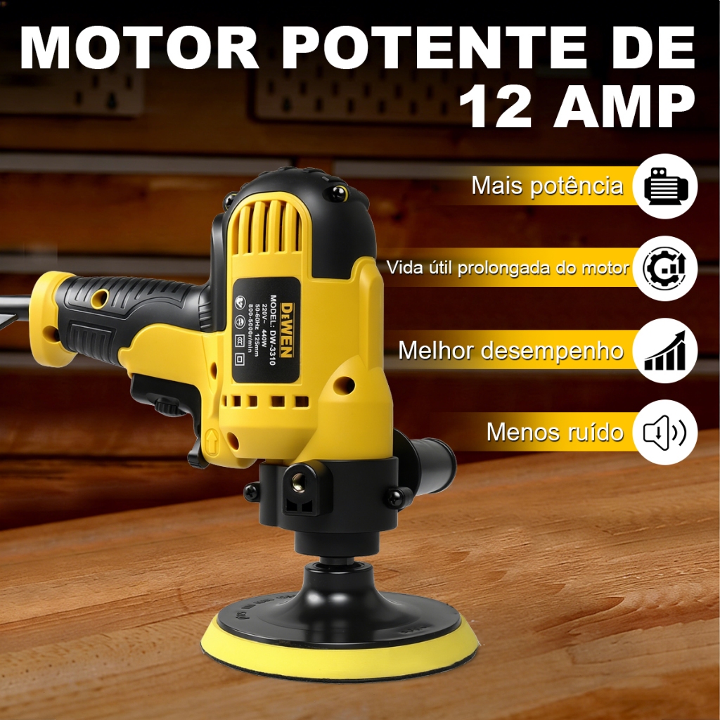 Politriz Automotiva Profissional 7POI, 1800 watts, com múltiplas velocidades (600-3000 rpm), cabo removível, ideal para