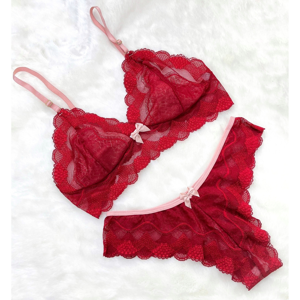 Kit 5 Conjuntos de Lingerie Sem Bojo Sexy Bicolor Calcinha e Sutiã