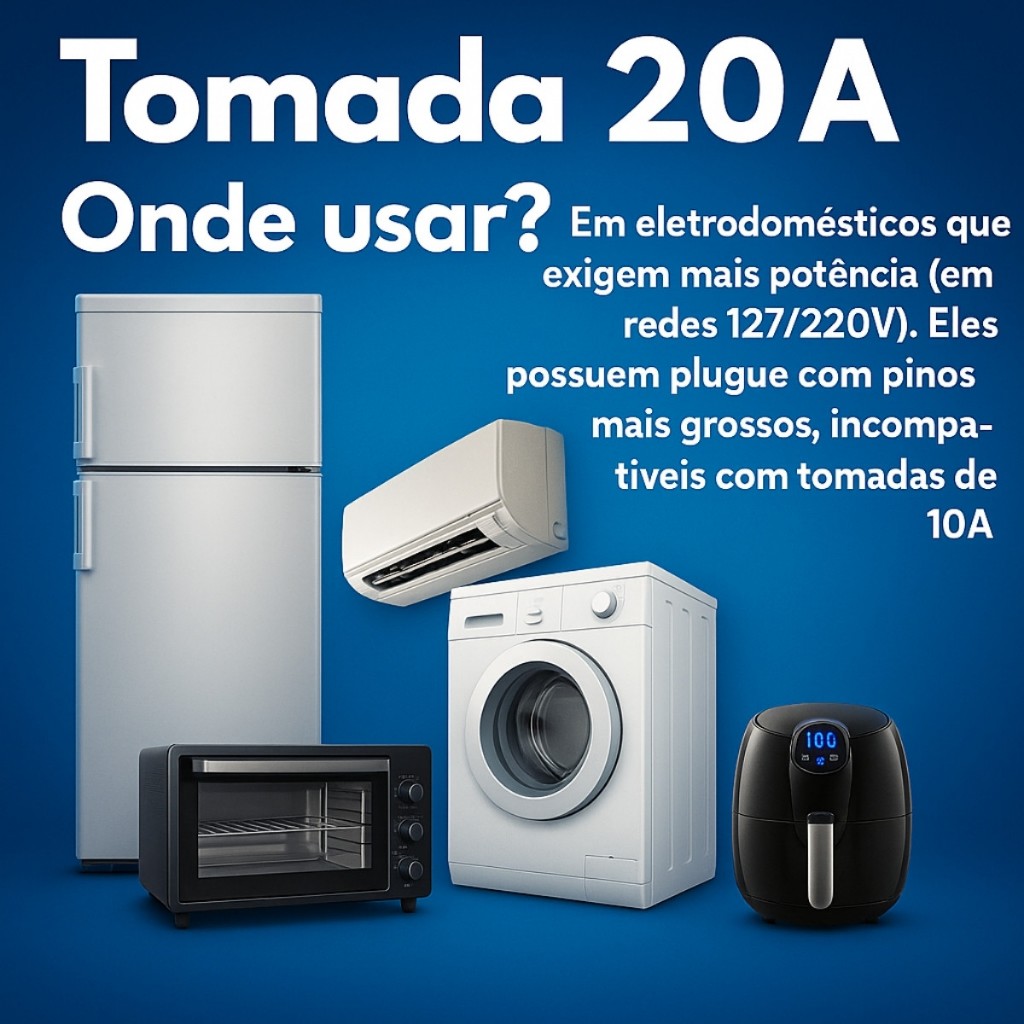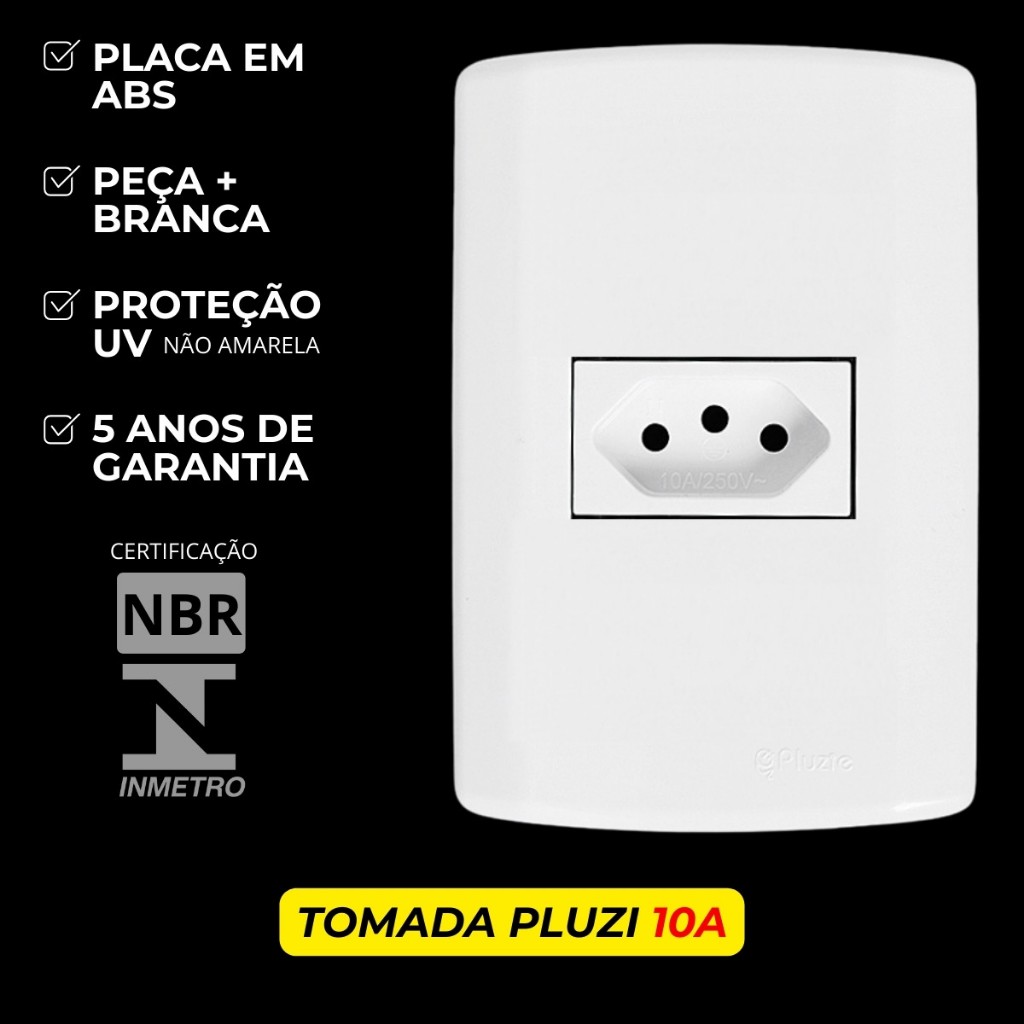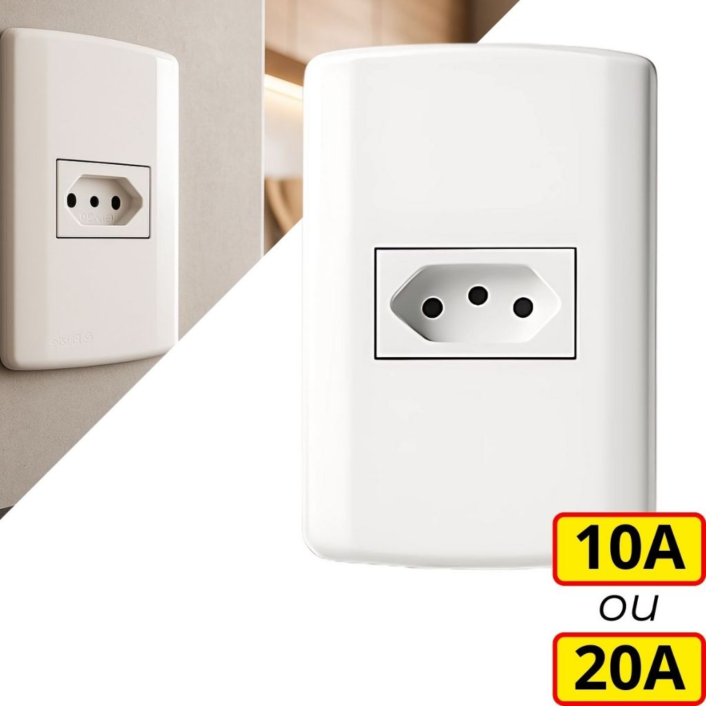 Tomada Elétrica 10A 20A Amperes Modular Pino Grosso Linha Pluzi Branca Para Airfryer Microondas