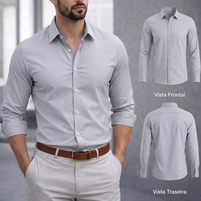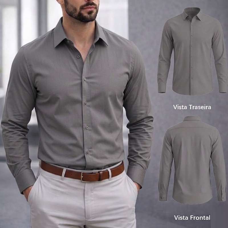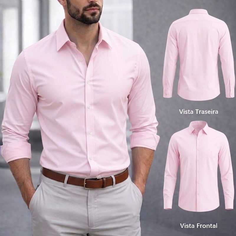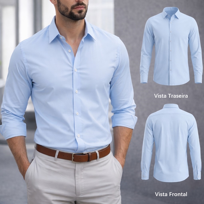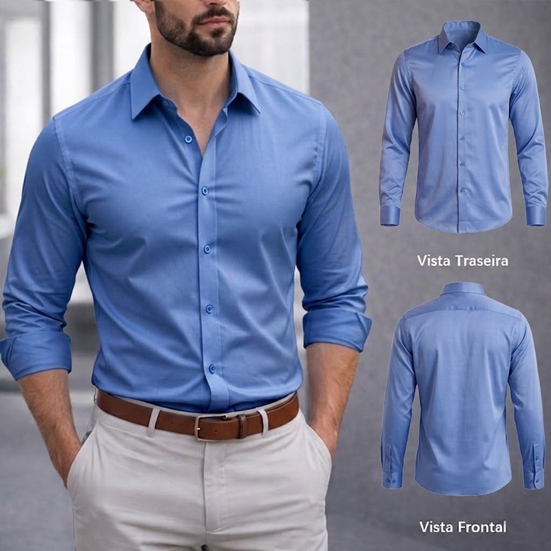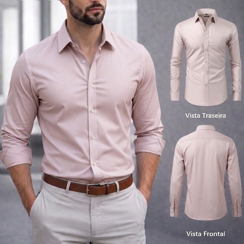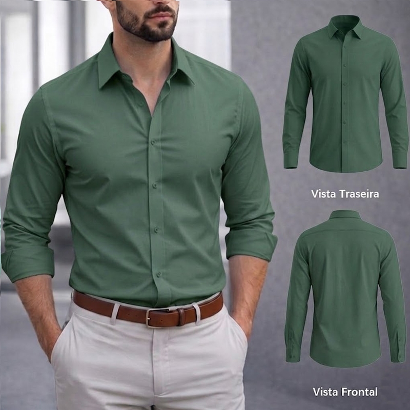 Camisa Social Masculina Manga Comprida Escritório Casual De Boa Qualidade Slim Fit Com Elastano