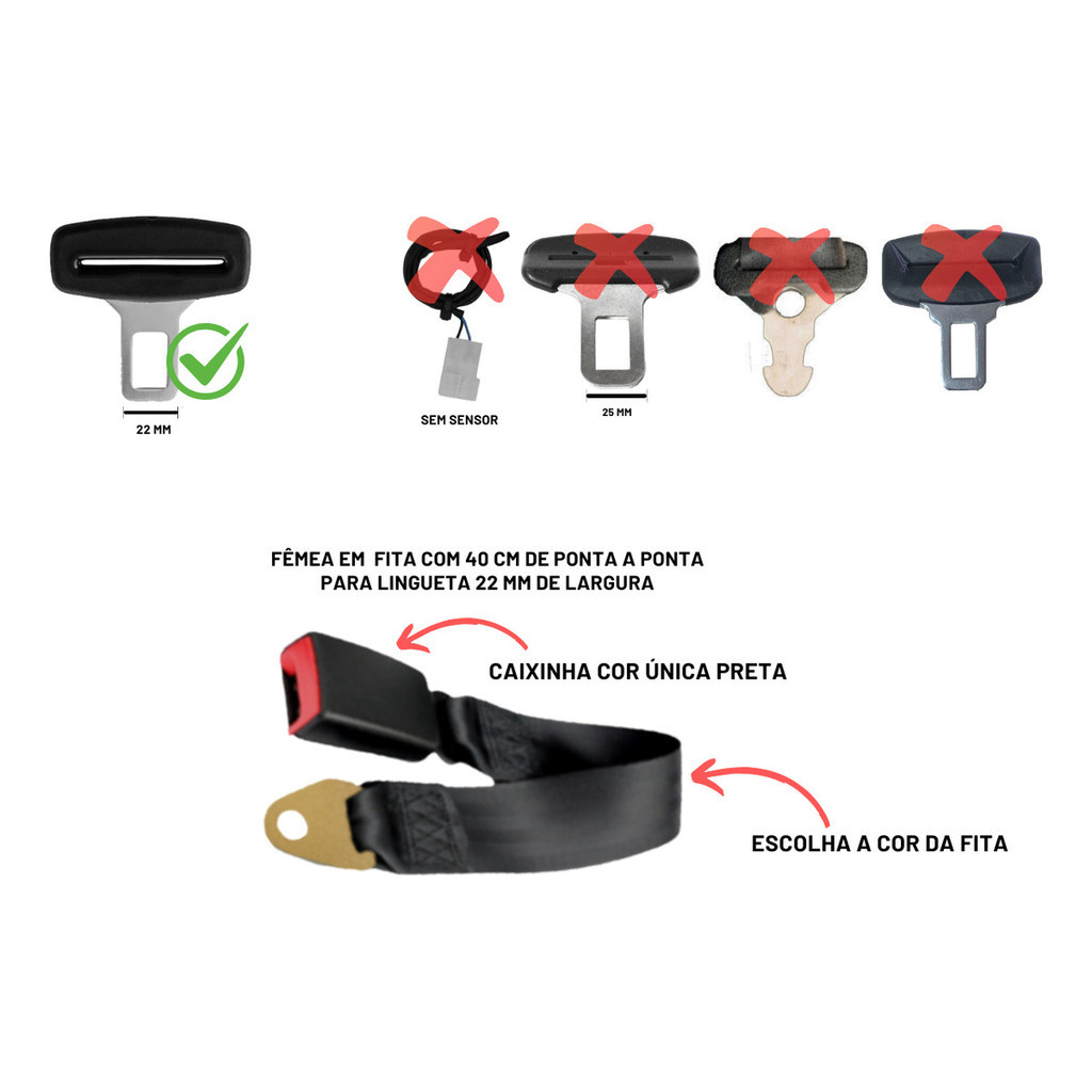 Fecho Fêmea Fita 40 Cm Cinto De Segurança Tucson