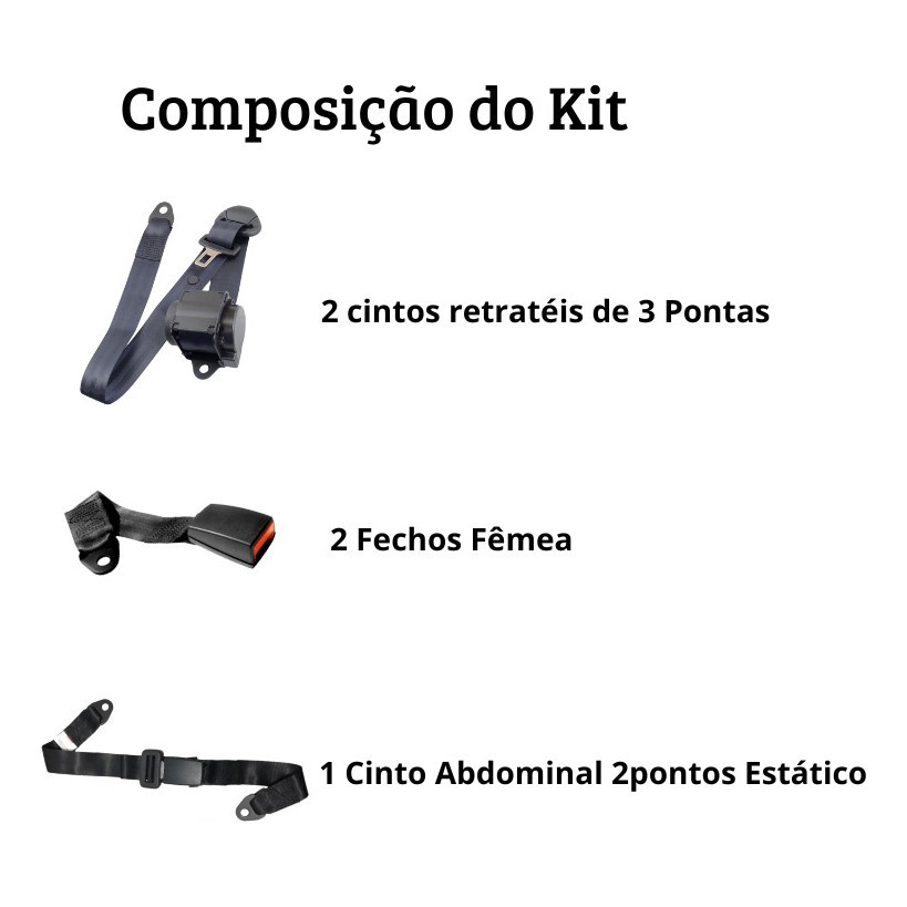Cinto De Segurança Kit Traseiro Retráteis 3 Pontos Universal