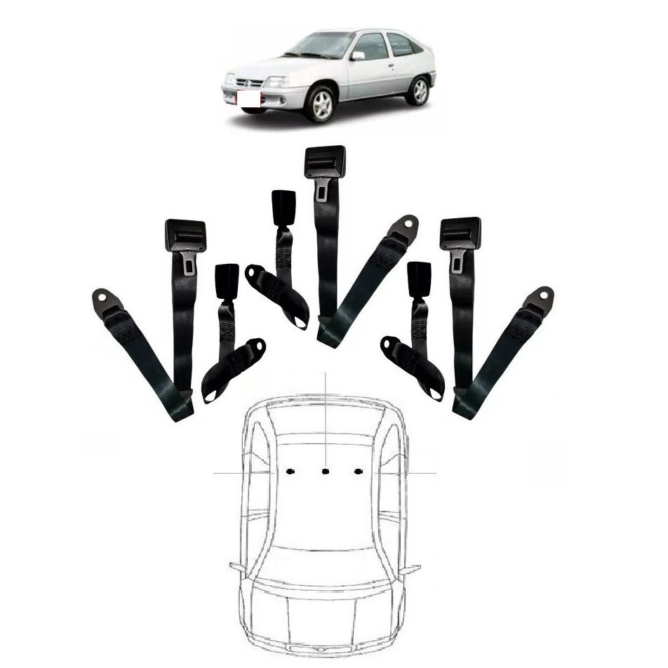 Kit cinto de segurança traseiro de 2 pontos GM Ipanema + fechos