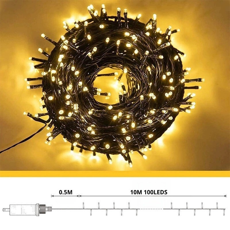 Luzes Natalina Pisca Ritmico Pisca 10m 100 LEDs 220V Branco Quente com Controle e Plugue - Decoração Árvore Natal 2025