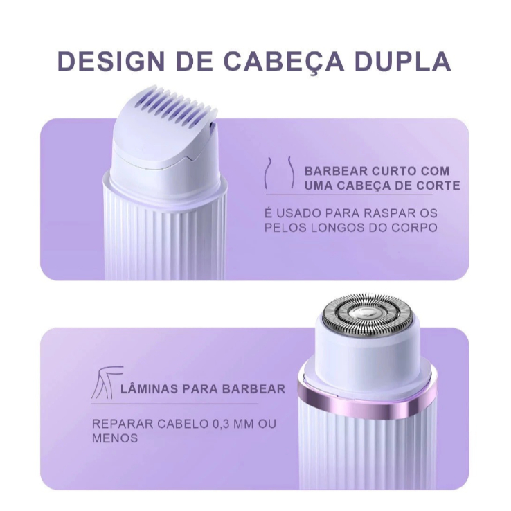 Depilador elétrico feminino para cabelo, cuidado suavemente para sua pele, lâmina dupla recarregável, experiência indolo