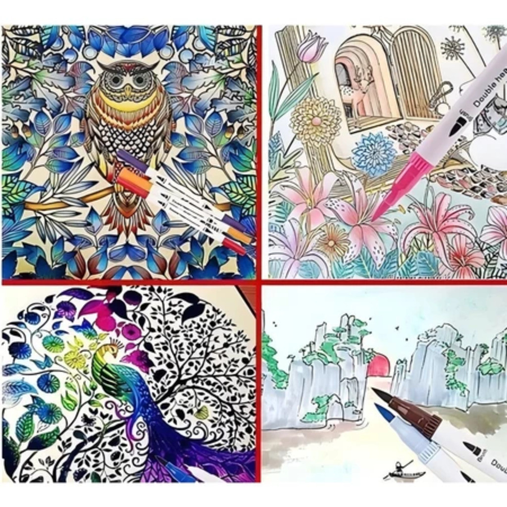 Kit 24/36/48/60/80/100/120 Cores 2 Em 1 Escova Caneta Para Letras E Dupla De Ponta Fina Colorir De Desenho